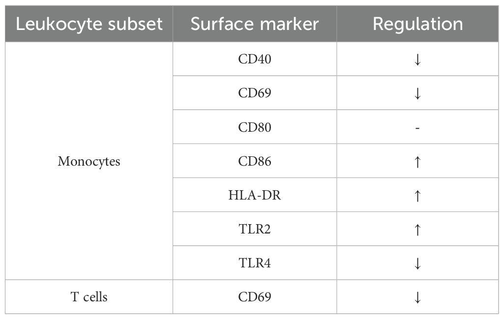 Table 4. Native cell surface expression of cell activation markers on CD14+ monocytes, CD16+ granulocytes, and CD4+ and CD8+ T cells.