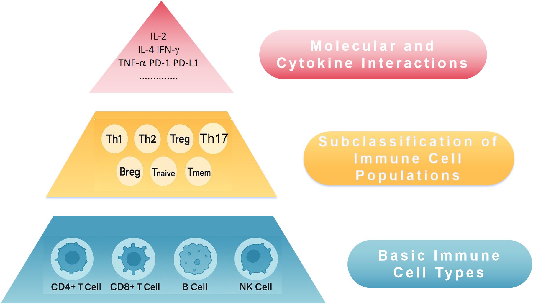 Within the primary immune compartments, further categorization of immune cells into functional subsets provides deeper insights into immune function: