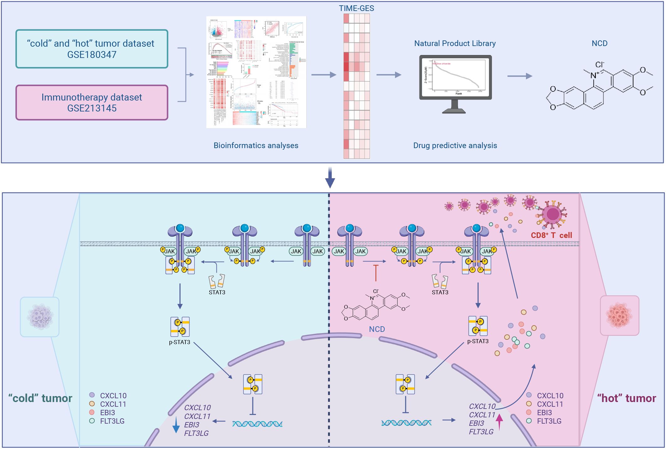 In summary, our study demonstrates that TIME-GES is a clinically relevant tool for distinction of tumor immune phenotypes, prognosis evaluation, and prediction of immunotherapy responses. Moreover, TIME-GES offers a strategic framework for identifying novel tumor immune-modulatory compounds. Using this approach, we identified NCD as a previously unrecognized tumor immunotherapeutic agent capable of reprogramming the tumor immune microenvironment, through upregulating the TIME-GES genes, ultimately enhancing antitumor immunity. This work might expand therapeutic options for immunologically “cold” tumors and supports the feasibility of biomarker-guided discovery of small molecules to potentiate cancer immunotherapy.