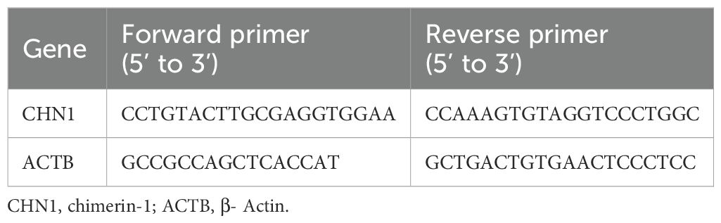 Total RNA extracted from participants’ PBMCs was reverse—transcribed into cDNA. Following cDNA synthesis, RT-qPCR was conducted using CHN1-specific primers (Table 1), and the relative expression levels were quantified and statistically analyzed using standard ΔΔCt methods and analyzed statistically.