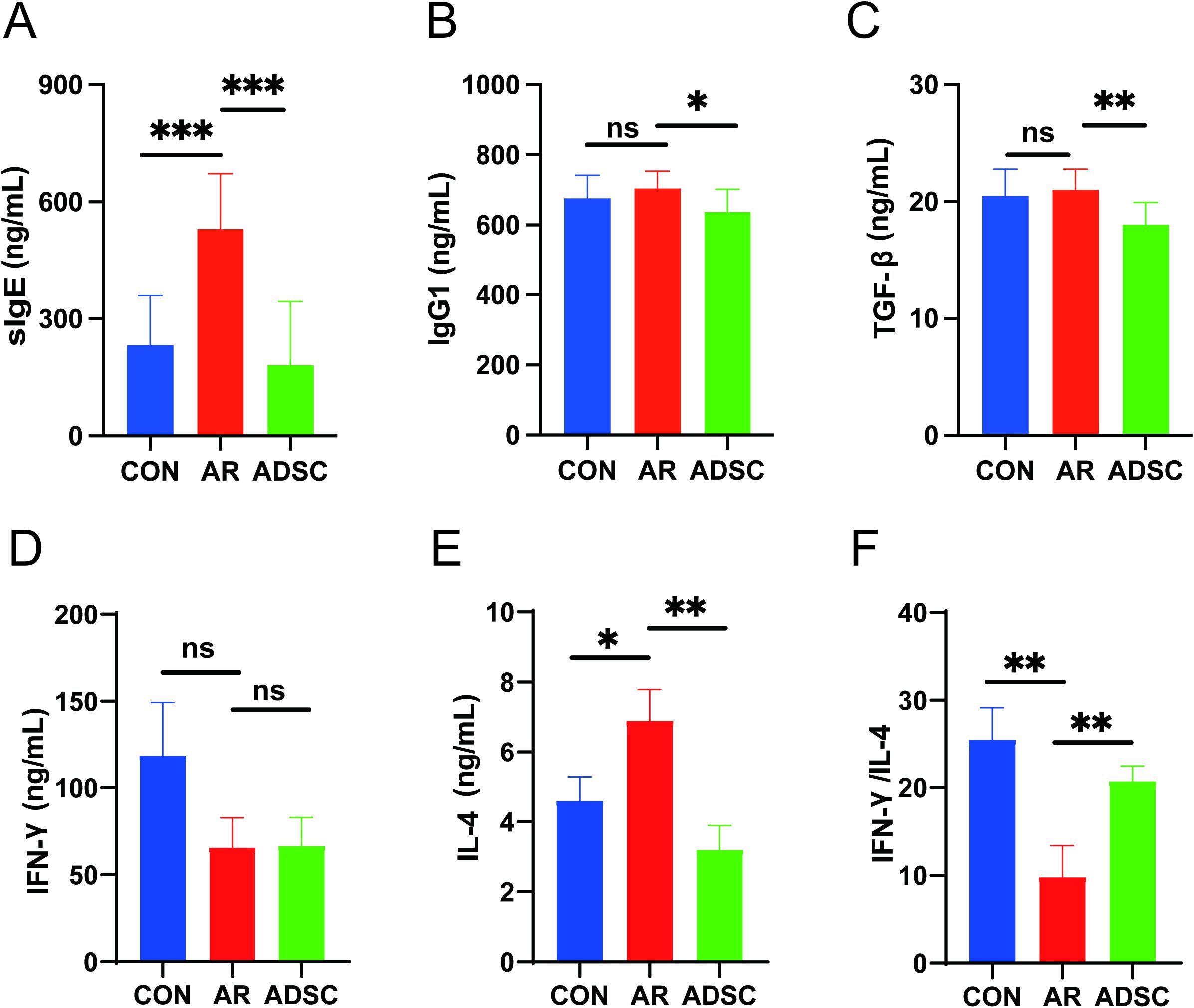 3.3 ADSCs suppressed allergic antibodies and restored Th1/Th2 balance in AR mice