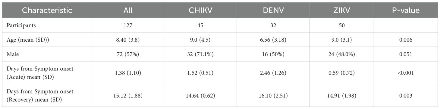 Conclusion: These findings reveal that early immune responses to arboviruses are defined more by infection-specific dynamics than by viral taxonomy, underscoring distinct immunological signatures for each virus.