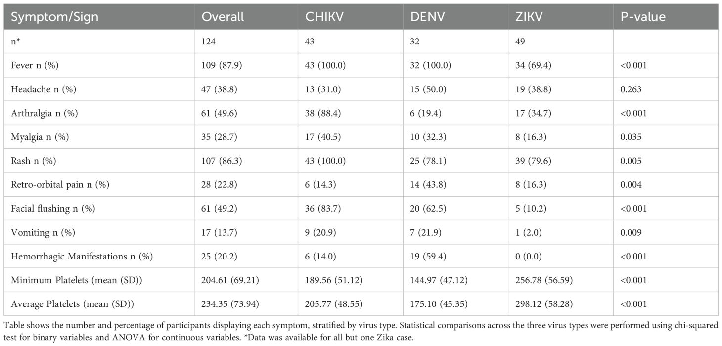 84. Waggoner JJ, Gresh L, Vargas MJ, Ballesteros G, Tellez Y, Soda KJ, et al. Viremia and clinical presentation in nicaraguan patients infected with zika virus, chikungunya virus, and dengue virus. Clin Infect Dis. (2016) 63:1584–90. doi: 10.1093/cid/ciw589, PMID: 27578819