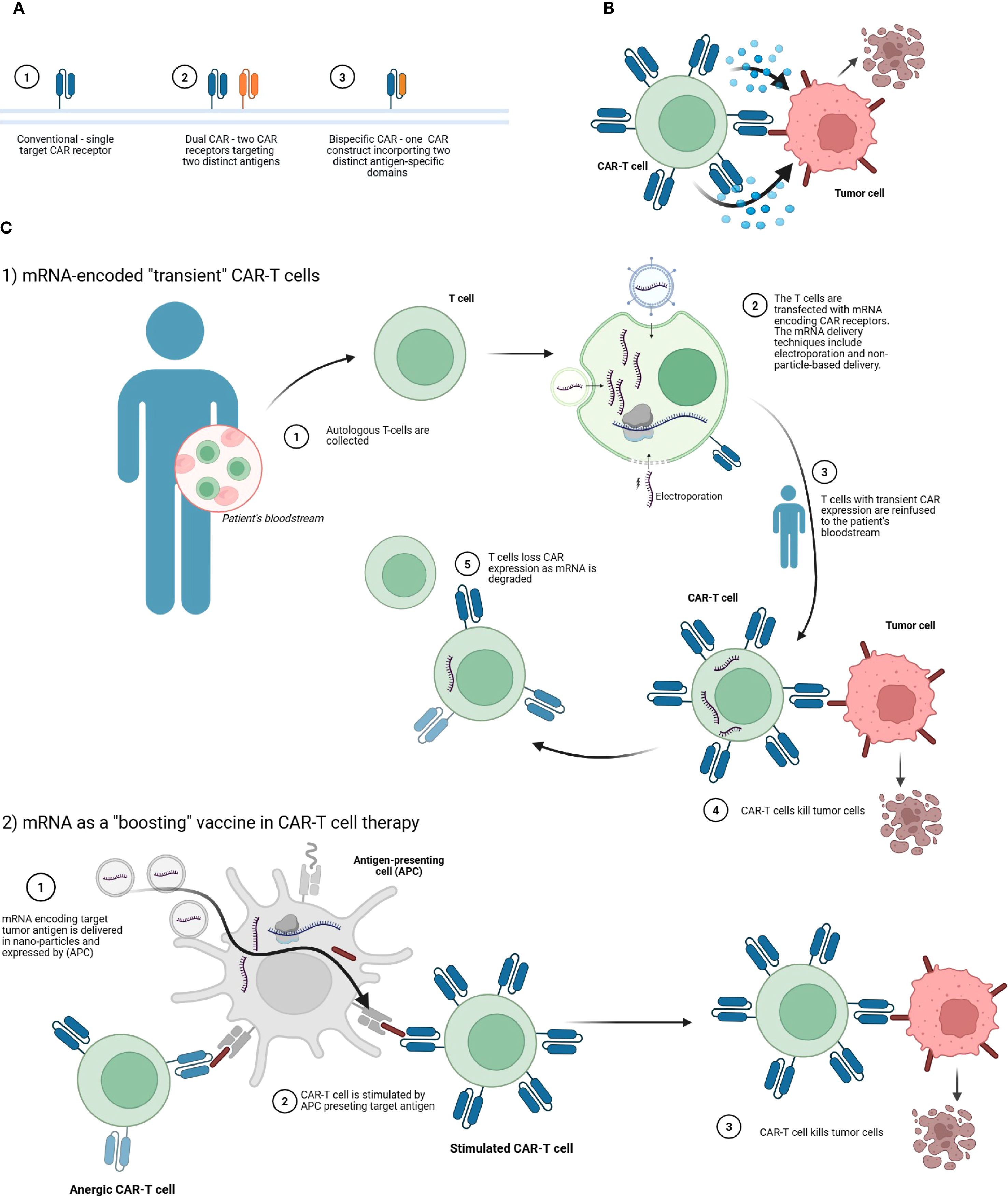 160. Wu J, Wu W, Zhou B, and Li B. Chimeric antigen receptor therapy meets mRNA technology. Trends Biotechnol. (2024) 42:228–40. doi: 10.1016/j.tibtech.2023.08.005