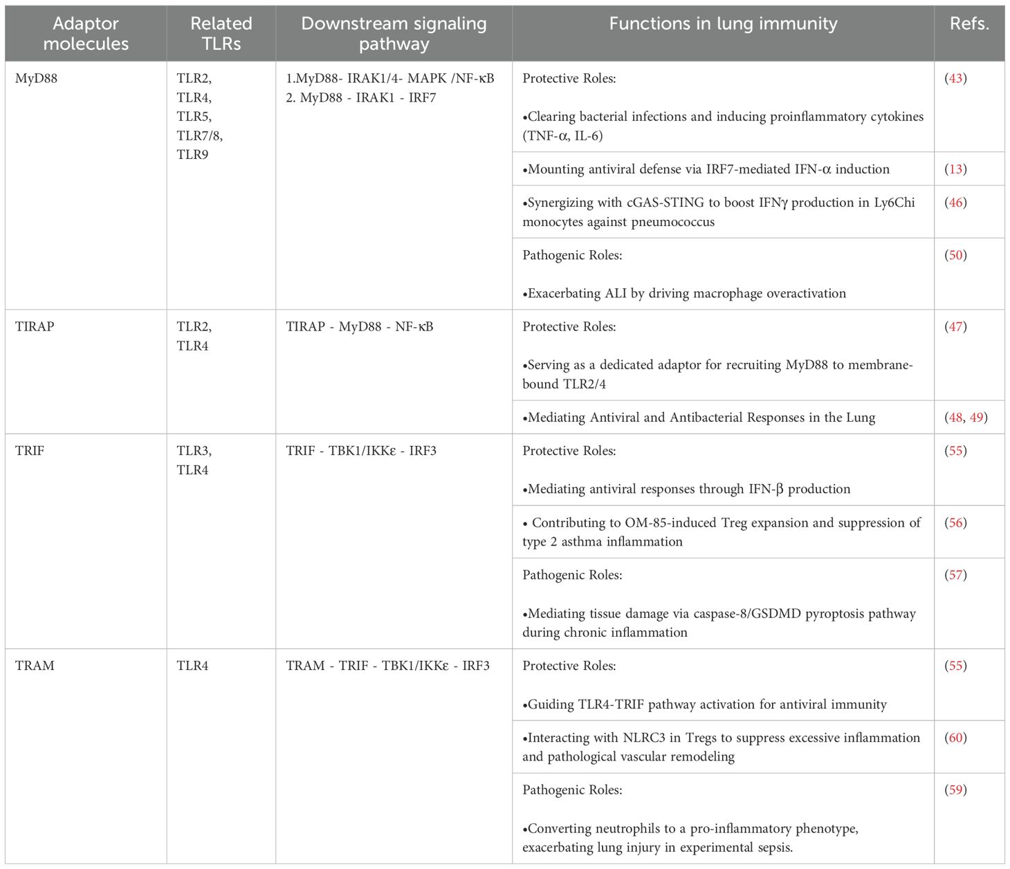 3 Orchestrating immunity and inflammation: functions of TLR adaptors in the lung