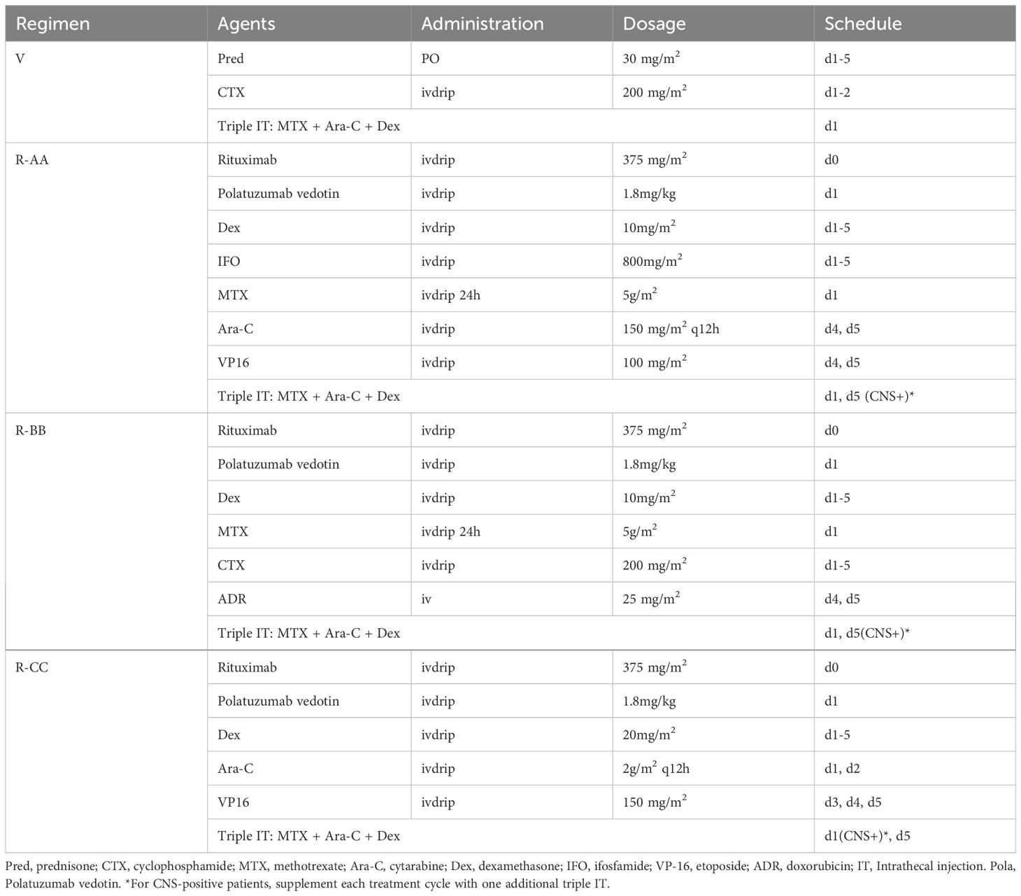 In these two pediatric patients, we employed a regimen combining polatuzumab vedotin, rituximab, and a modified BFM95 backbone (excluding vincristine to mitigate potential neurotoxicity). Notably, both patients achieved a CMR very early in the course of therapy (after only two treatment cycles). The primary toxicities were grade 4 myelosuppression with febrile neutropenia and mucositis, which resolved with supportive care.