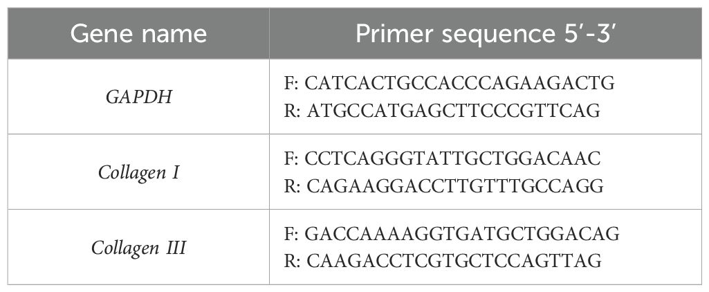 Total RNA from mice livers was extracted with Trizol. After the concentration and purity were detected, RNA was reverse transcribed into complementary DNA (cDNA) using a reverse transcription kit (EnzyArtisan Biotech, Shanghai, China). RT- qPCR was used to detect the expression of collagen I and III genes using Fast SYBR Green master Mix (Bio-Rad, Hercules, CA, USA). The primers of the genes are shown in Table 1.
