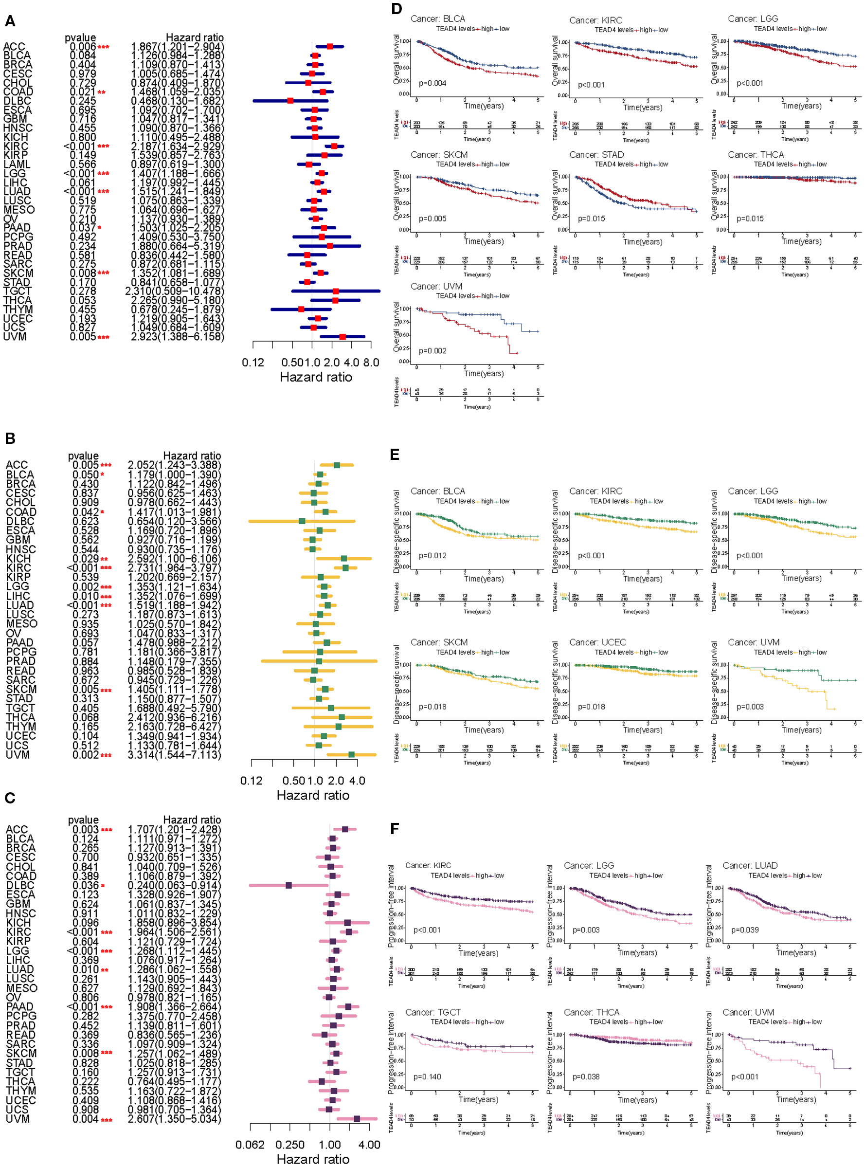 3.2 Prognostic impact of TEAD4 expression across pan-cancer types