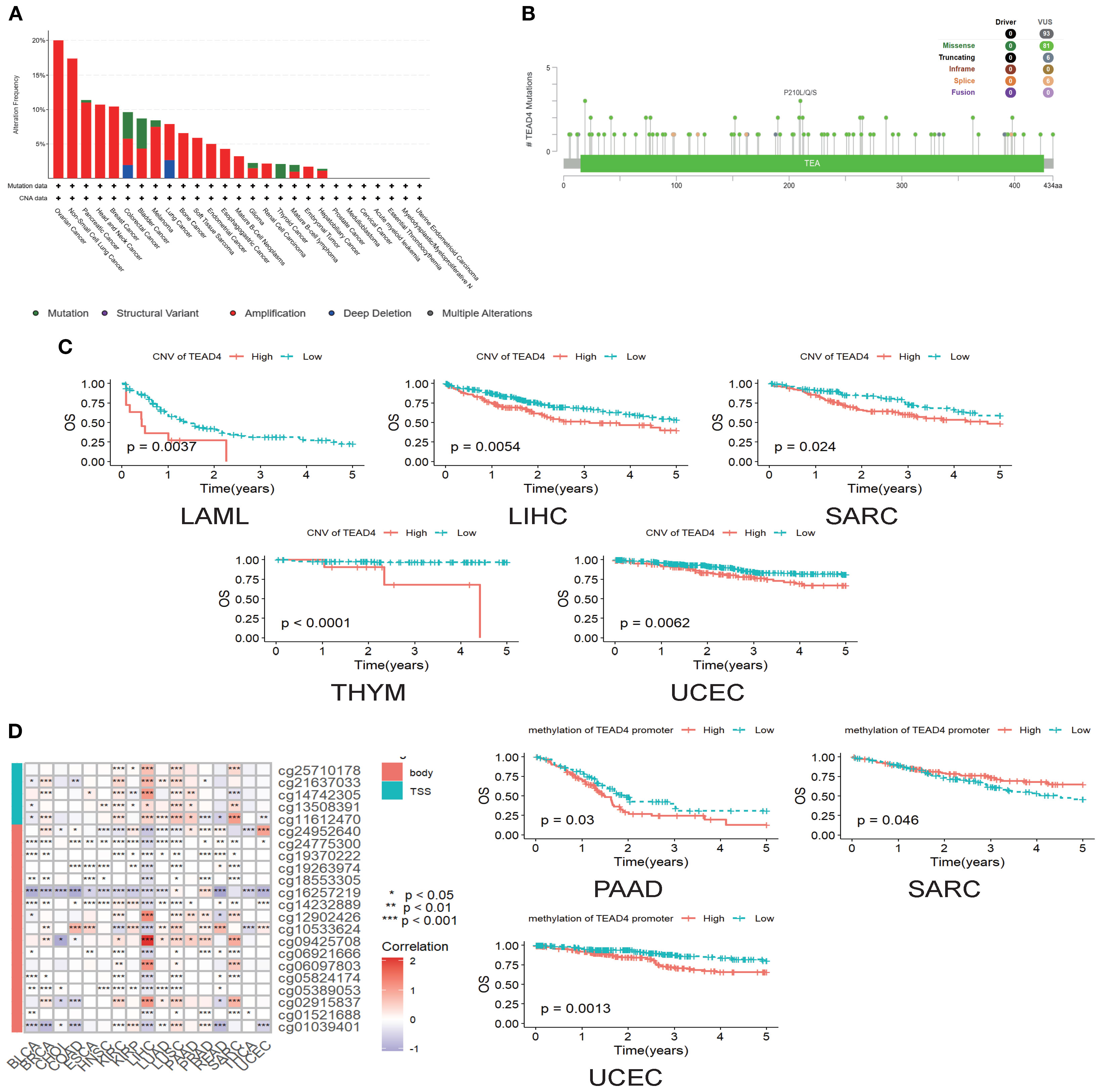 2.4 Landscape of TEAD4 genomic alterations and prognostic impact