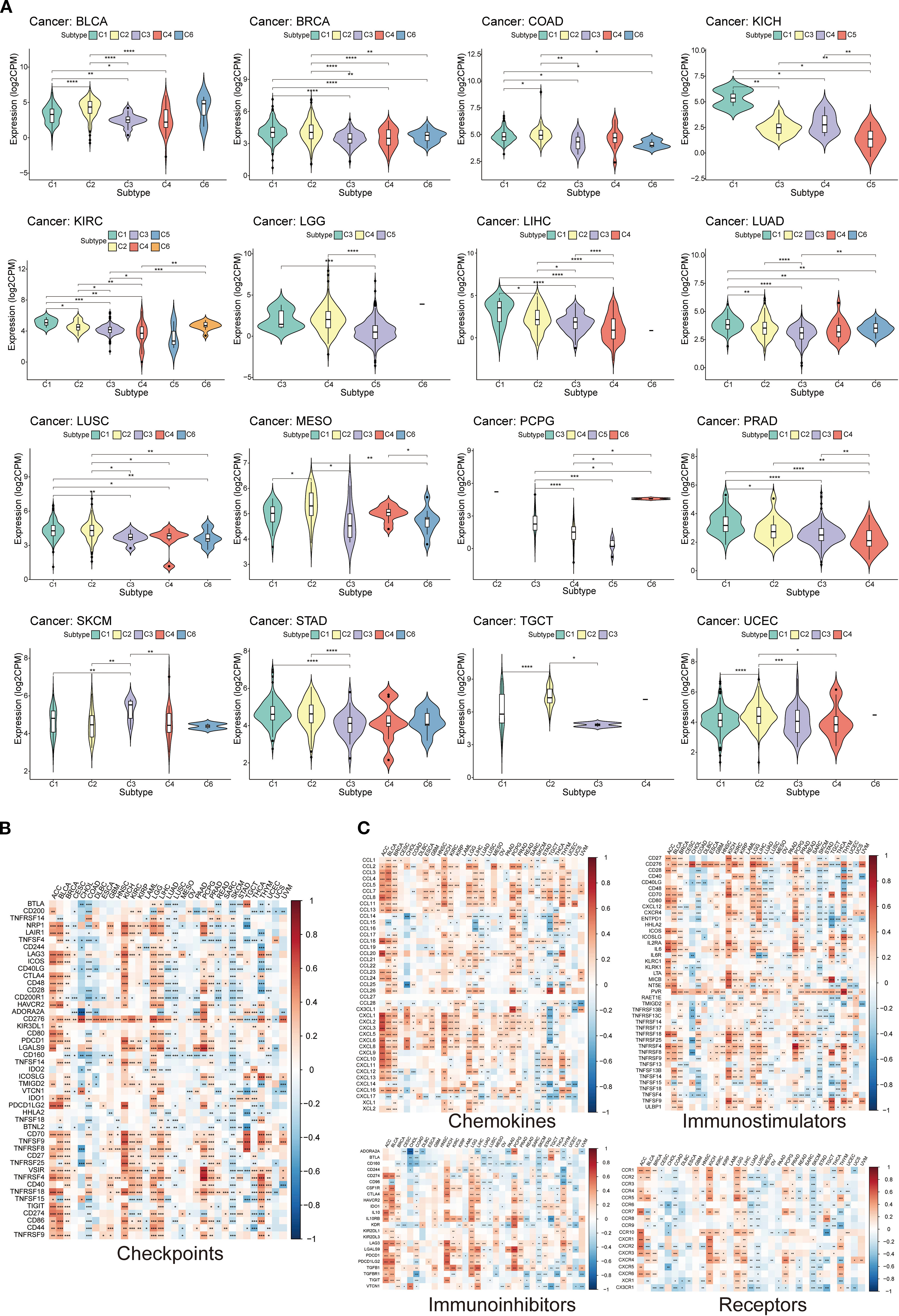 Subsequently, co-expression relationships between TEAD4 and a panel of key immune regulators, including immune checkpoint molecules, chemokines, chemokine receptors, immune stimulators, and immune inhibitors, were systematically characterized. For gene expression arrays with multiple probes mapping to the same gene, technical replicates were consolidated by averaging expression values using the avereps() function from the limma R package to generate unique expression profiles per sample. Pairwise Pearson correlation coefficients were then computed using the cor.test() function in R to quantify TEAD4-immunogene associations, with statistical significance assessed at P < 0.05.