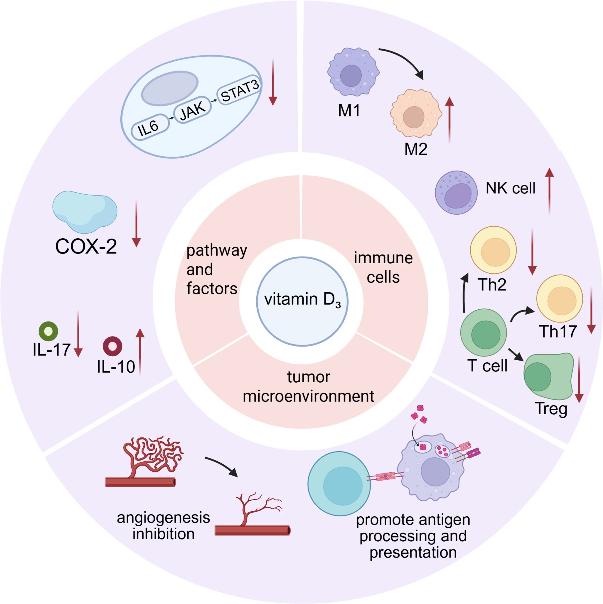 Figure 1. The multifaceted effects of vitamin D3 on the cells, molecules, and immune microenvironment.