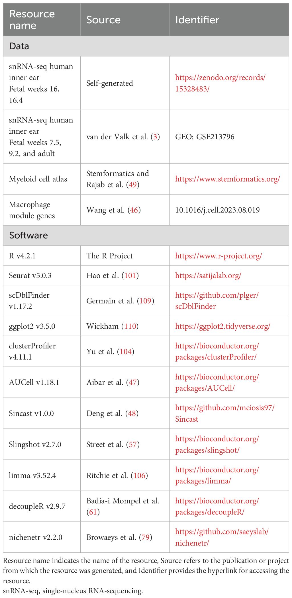 Table 4. Summary of the key resources used in this study, including the datasets analyzed and the software employed.
