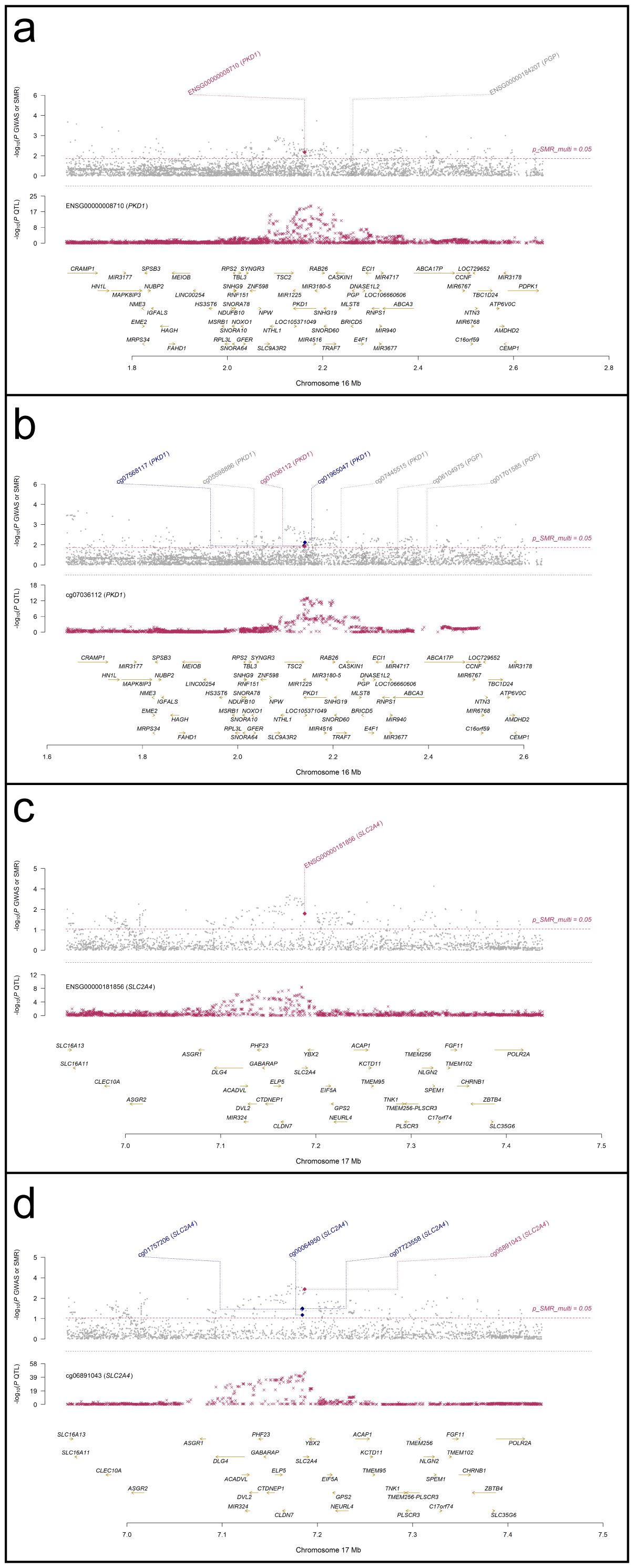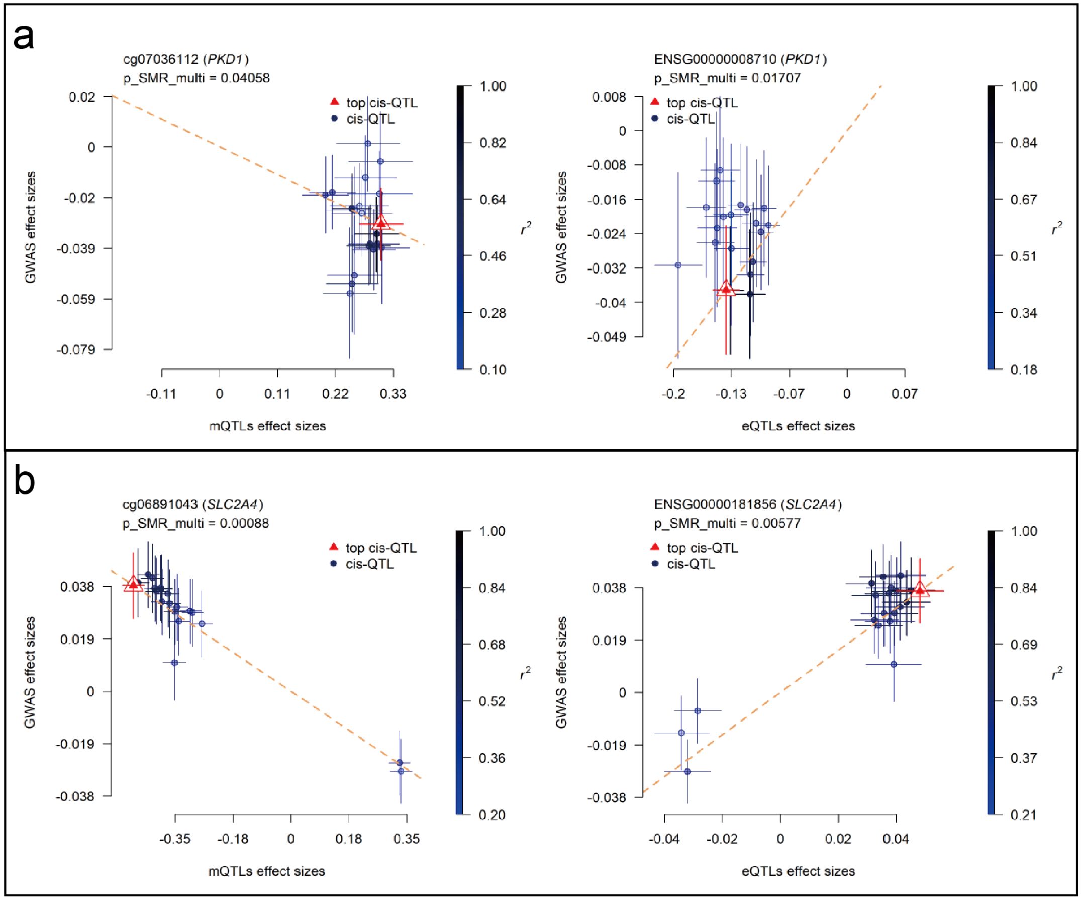 Colocalization and SMR effect size analyses of PKD1 and SLC2A4