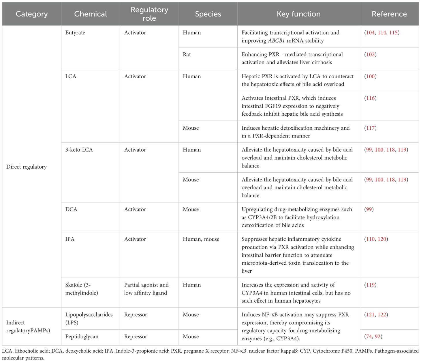 3 Recent advances in gut microbiota metabolite-mediated regulation of PXR activity