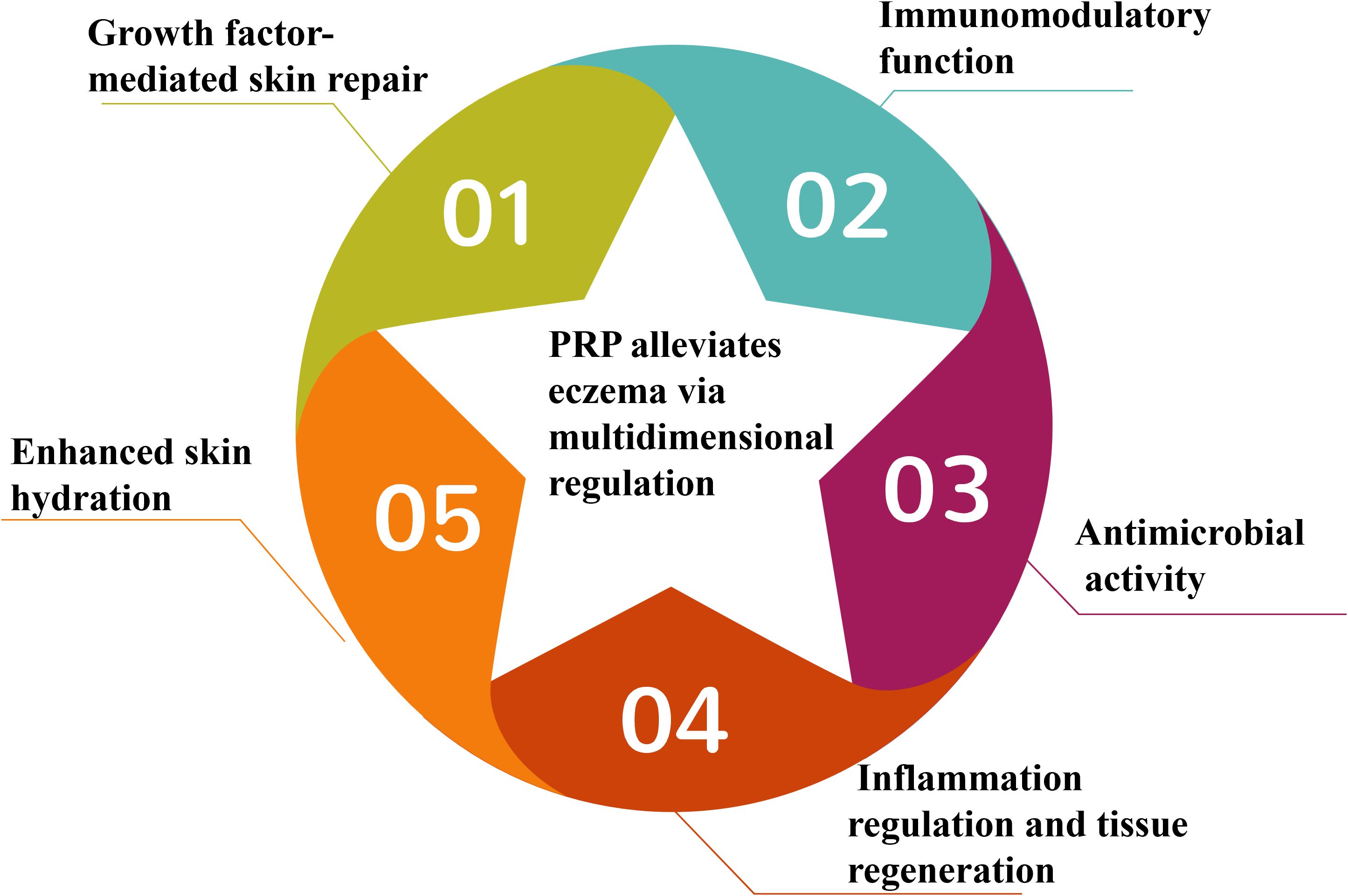 Staphylococcus aureus (S. aureus) colonization or infection frequently occurs in eczematous skin and exacerbates disease progression. PRP may counteract this through direct antimicrobial actions (21) or by enhancing host defense mechanisms, thereby reducing infection-triggered flare-ups.