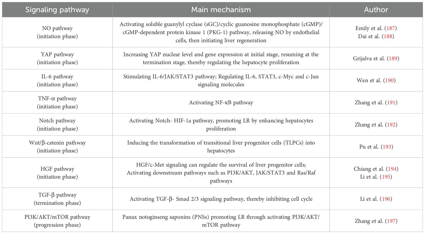 191. Zhang C, Sun C, Zhao Y, Ye B, and Yu G. Signaling pathways of liver regeneration: biological mechanisms and implications. iScience. (2024) 27:108683. doi: 10.1016/j.isci.2023.108683