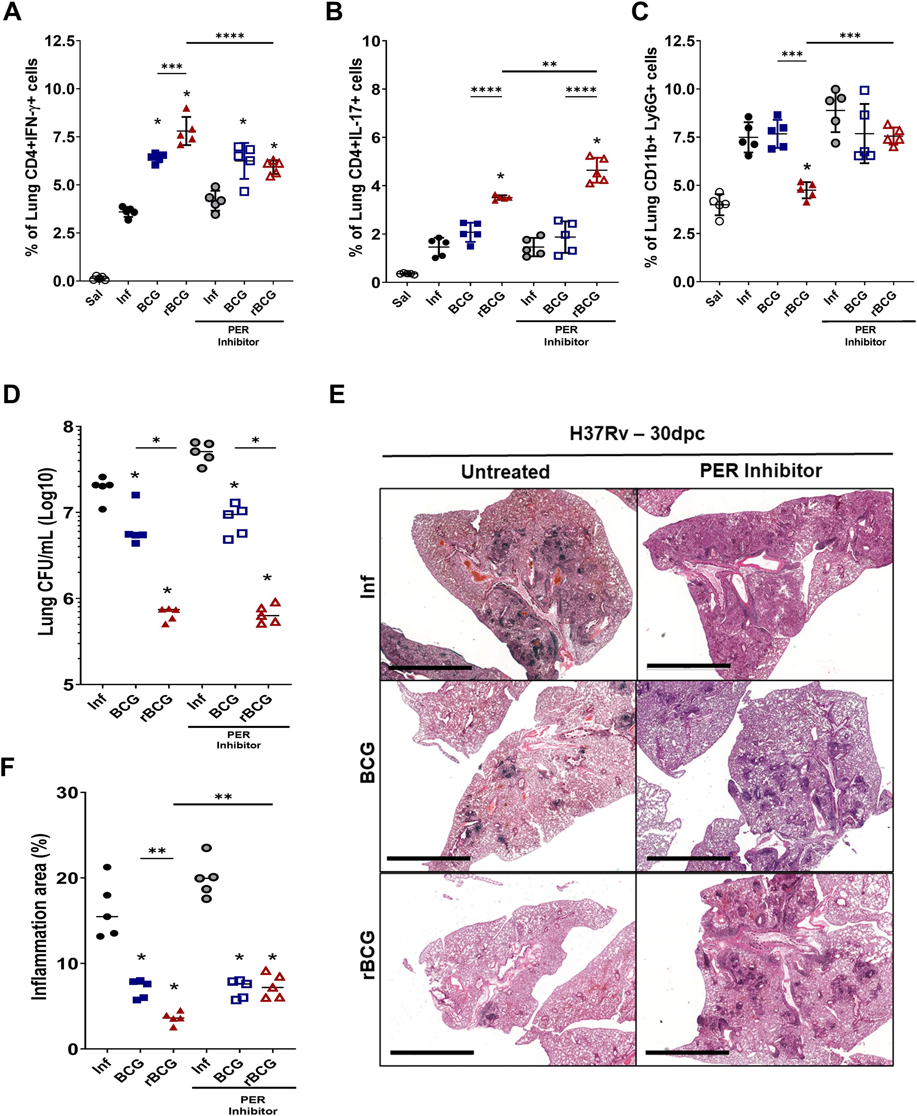 Throughout the experiment, animals were monitored daily for signs of distress or adverse effects related to the treatment or infection. On day 120 post-immunization (30-dpc), mice were euthanized as per established protocols. Lungs were collected to evaluate the effects of PF670462 on local immune responses and protection. Lung tissues were processed for bacillary load quantification and flow cytometry, following previously described methodologies.