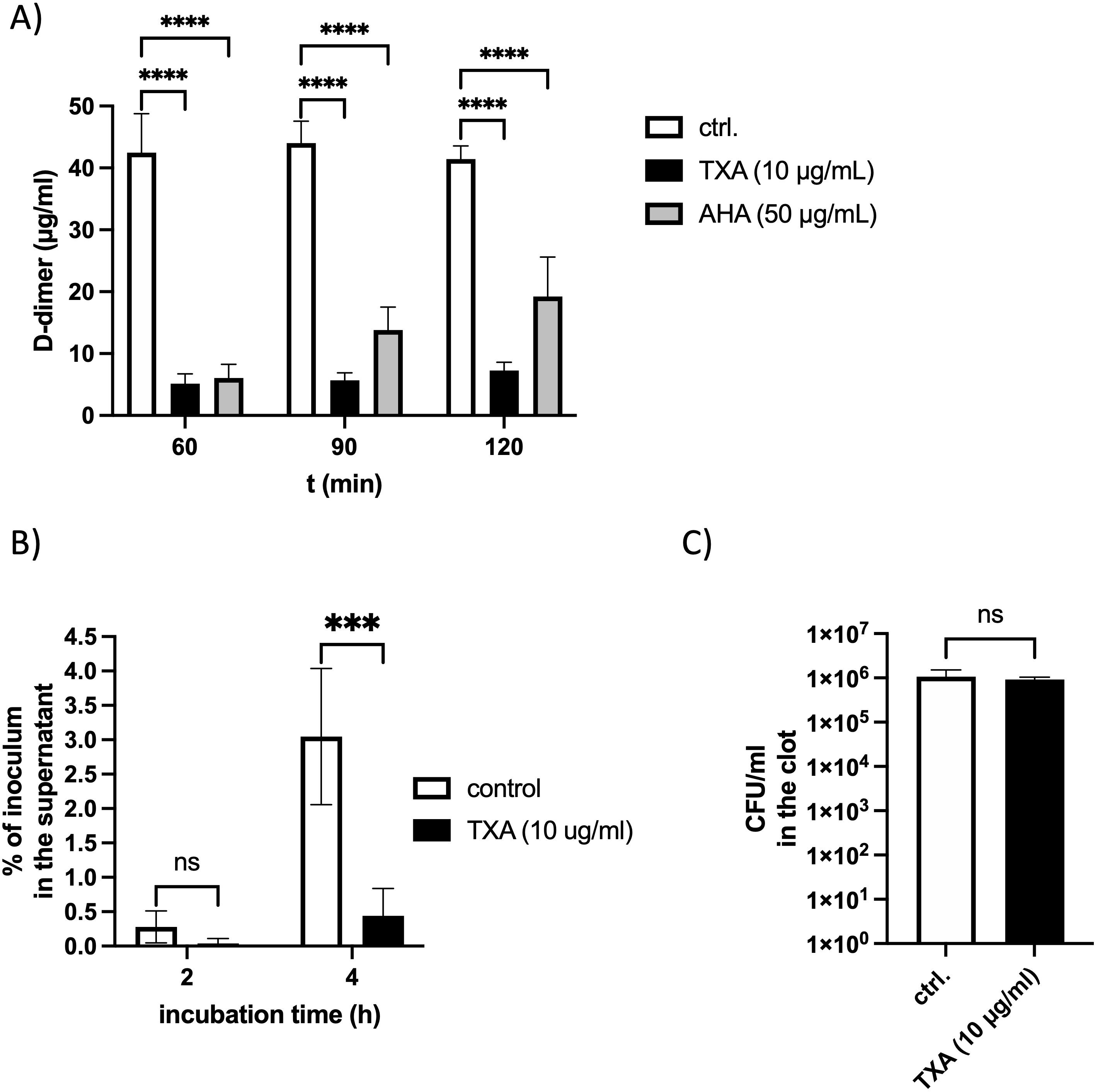 TXA and AHA reduce D-dimer levels and inhibit bacterial escape from plasma clots