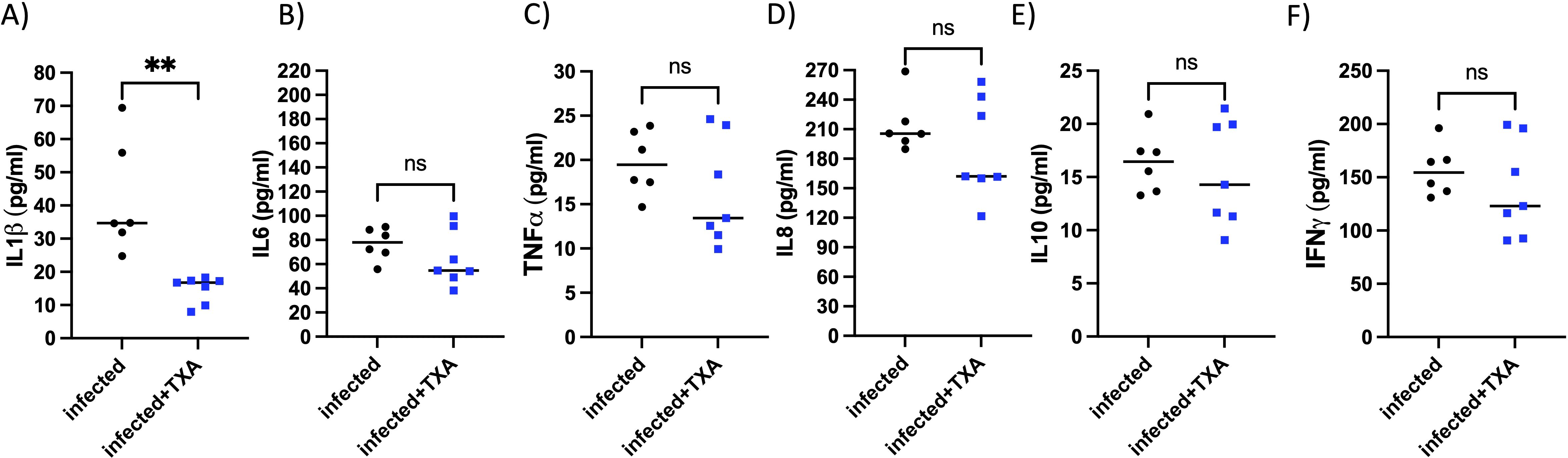 TXA treatment modestly reduces inflammation markers in the lungs of infected mice