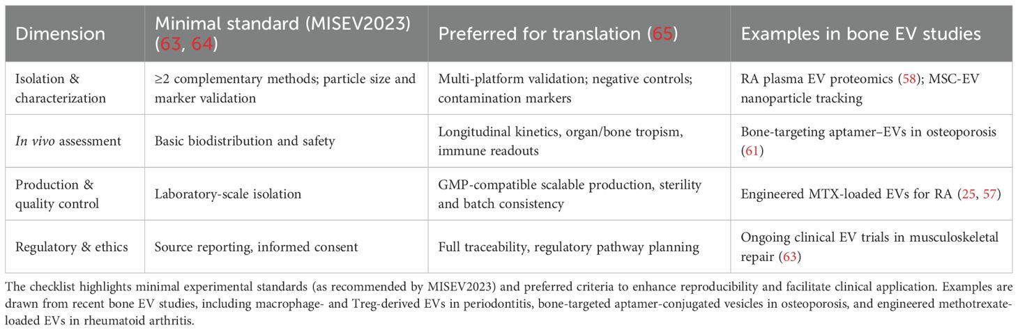Table 3. Translational readiness checklist for EV-based osteoimmune therapeutics (aligned with MISEV2023).
