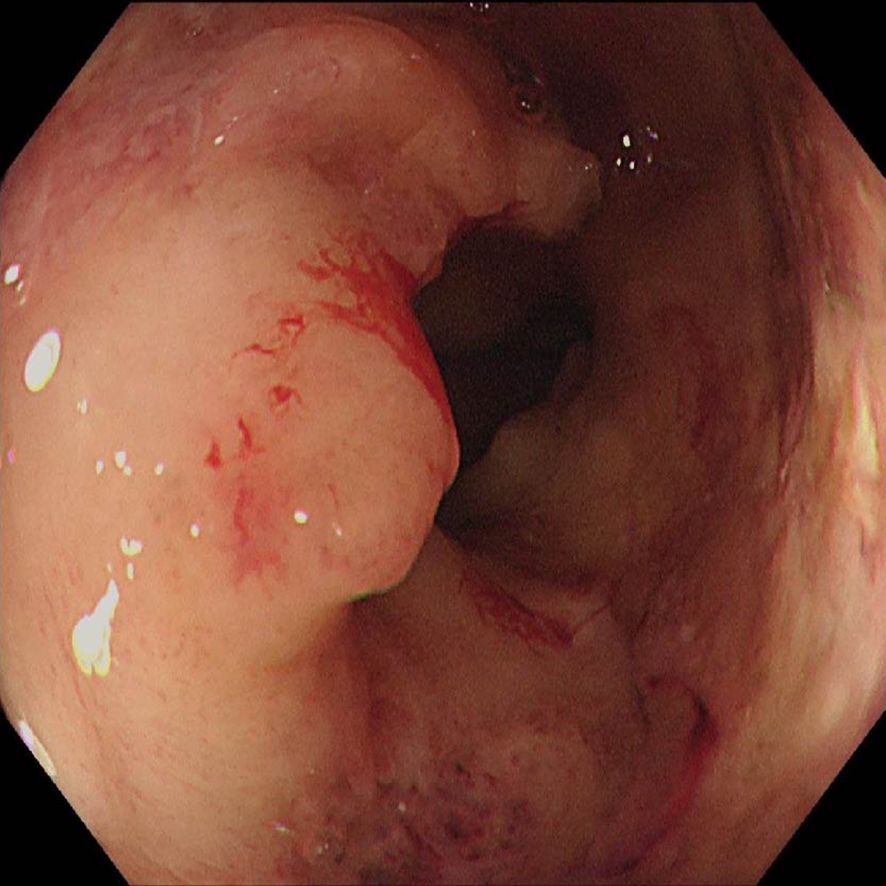 The first endoscopy revealed the tumor located 50 cm from the anus, with the intratumoral injection completed (Figure 6a). The second endoscopy showed significant tumor shrinkage, and the endoscope could barely pass through the narrowed area (Figure 6b). After the third treatment, the endoscope passed smoothly, and the tumor had further shrunk (Figure 6c). A repeat colonoscopy, performed in September 2025, revealed no enlargement of the lesion or active bleeding (Figure 7). Based on the AJCC staging criteria and a full abdominal CT scan (Figure 5b), the clinical stage of colorectal cancer was revised to cT3N1aM0, stage IIIb.