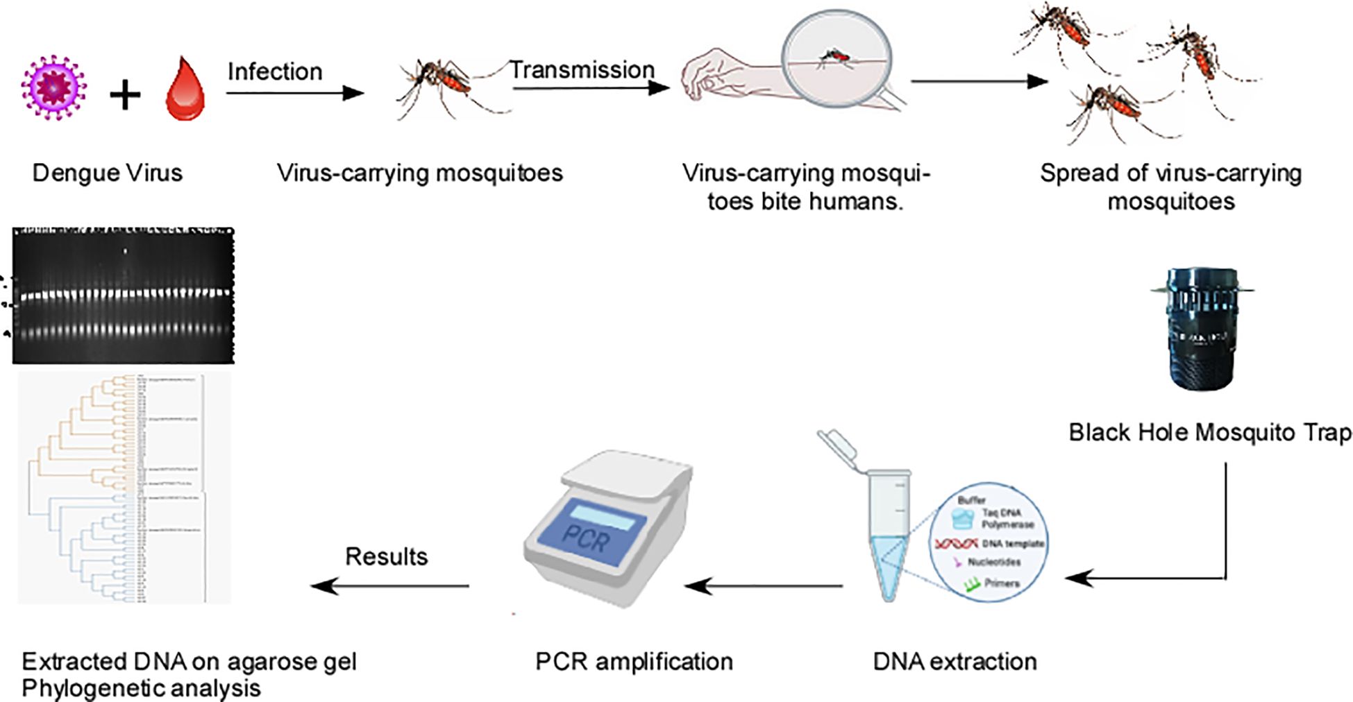 Methods: This research focuses on identifying Aedes species in various regions of Saudi Arabia using polymerase chain reaction (PCR) and sequencing techniques, in order to evaluate the molecular diversity of these dengue vectors in Jeddah and Jizan. The study utilizes the cytochrome one oxidase (COI) gene as a molecular marker for phylogenetic analysis to compare the populations of Aedes species.