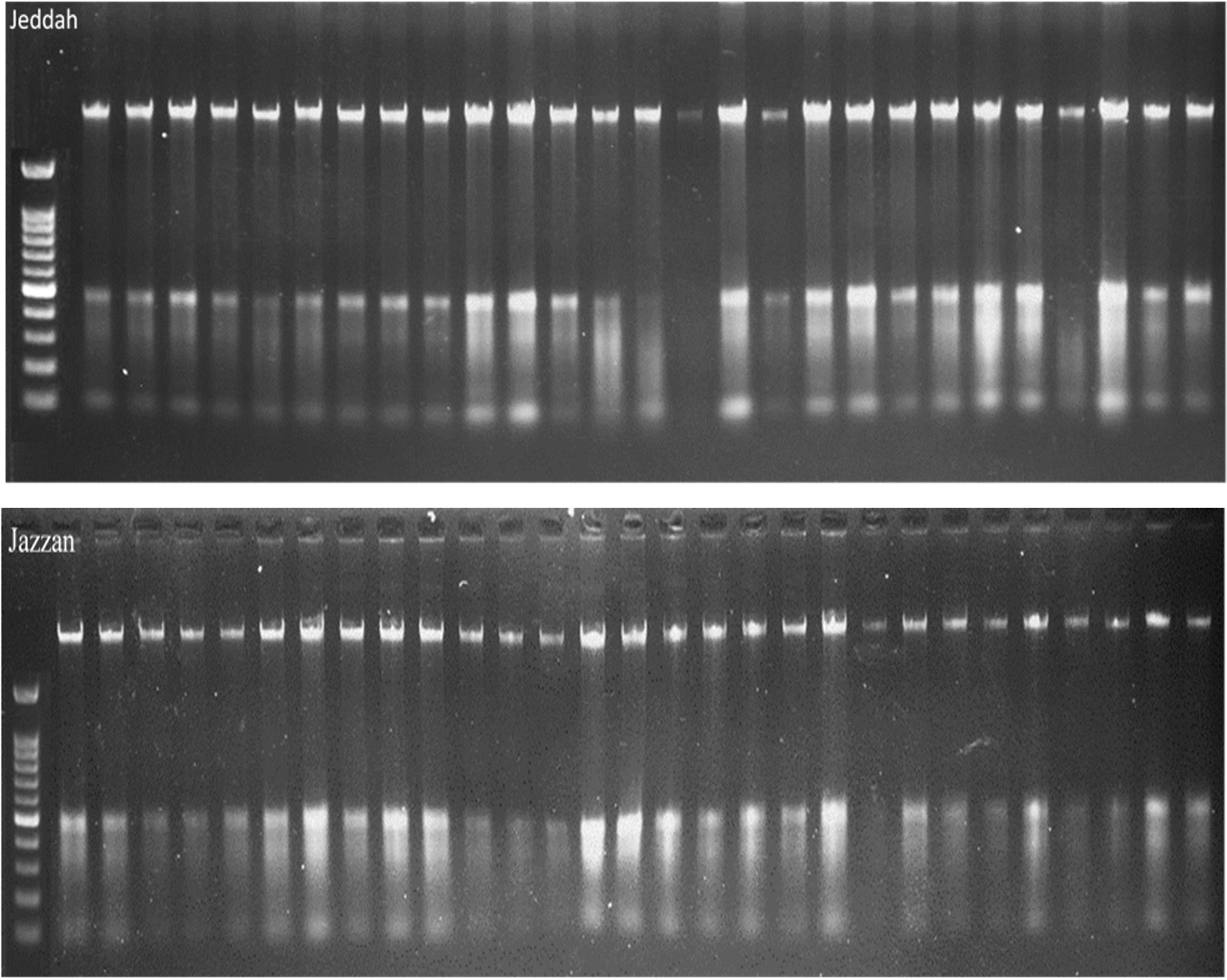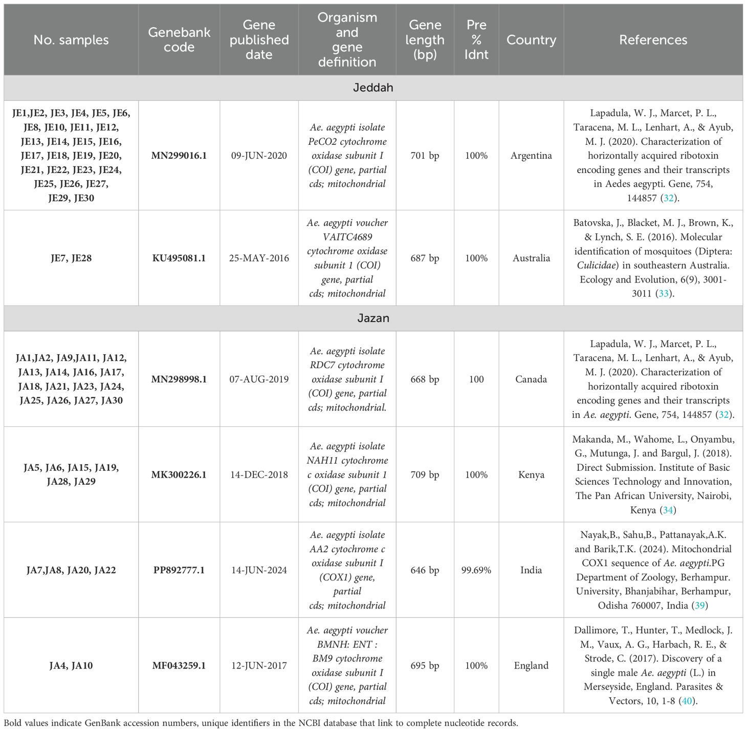 Table 2. The molecular identification of new collected Ae. aegypti from the Jeddah and Jazan regions and their accession numbers.