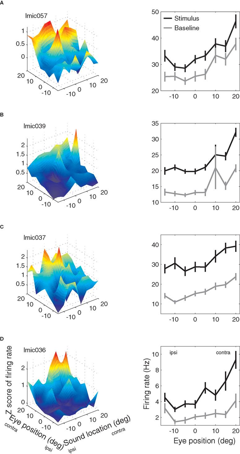 Examples of IC neurons with eye position sensitivity are shown in Figure 4.
