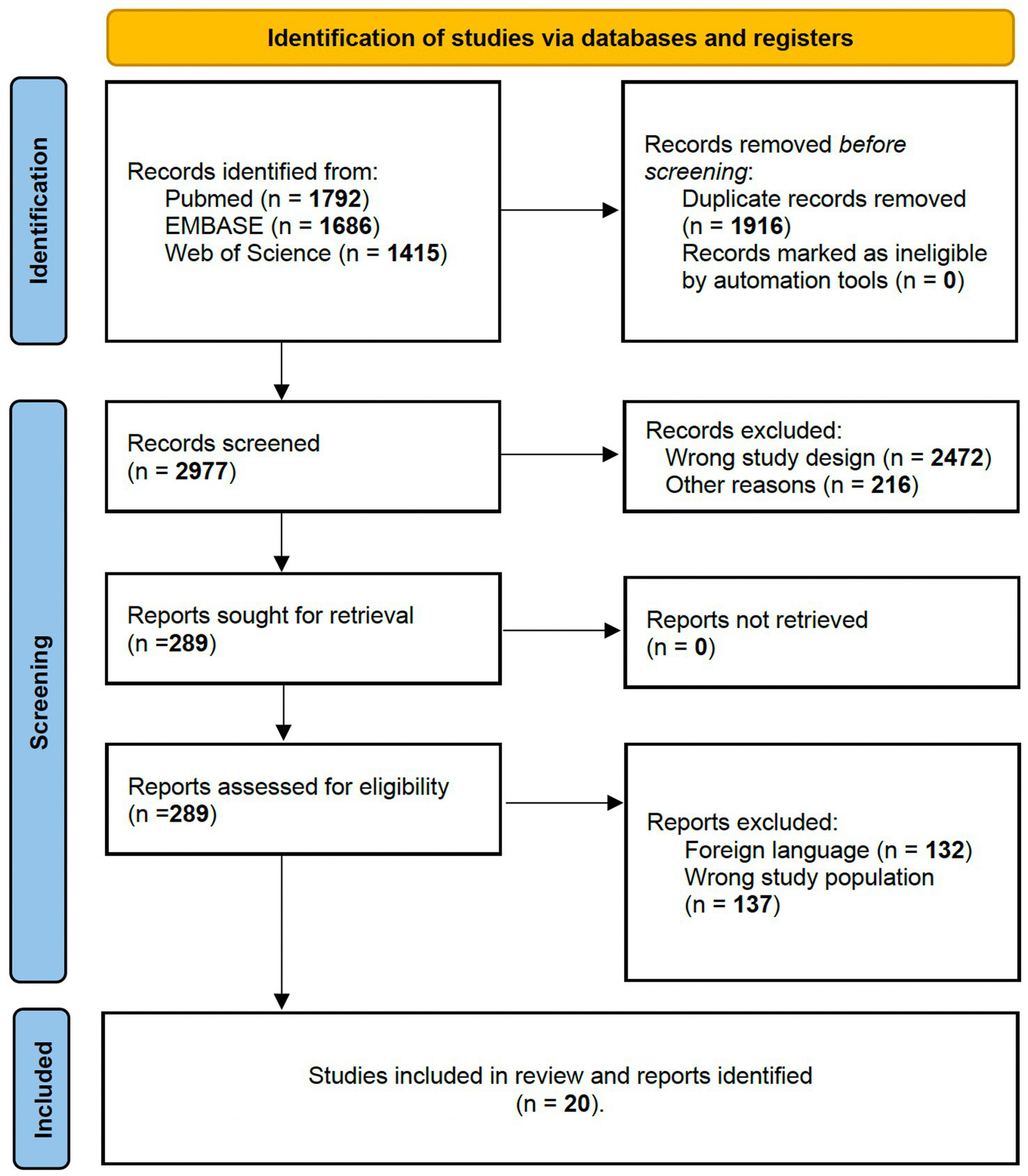 - Publication design: Case reports, abstracts, commentaries, editorial papers, conference papers and publications written in any language but English were excluded