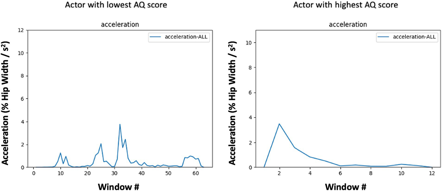 Attention switching taps into an individual’s flexibility in transitioning between activities and conversations, even deviating from pre-established plans. This cognitive flexibility is likely relevant to the context of social movement production in that individuals who show elevated scores in attention switching may manifest differential movement dynamics in real-time, which is crucial given the fluid nature of social exchanges. Finally, the imagination subscale focuses on one’s ability to effortlessly imagine and understand others’ experiences, whether during pretend games or while reading stories. This ability to mentally simulate and empathize with diverse social experiences possibly plays a role in shaping the production of social body movements. Individuals with elevated scores on the imagination subscale may have unique internal models of movements (Wolpert et al., 1995). Consequently, variations in this subscale could lead to a more nuanced understanding of the links between imagination and the articulation of internal states through movement. Thus, by including AQ subscales we can examine which specific BAP features that comprise the AQ (if any) play a more dominant role in modulating movement idiosyncrasies.