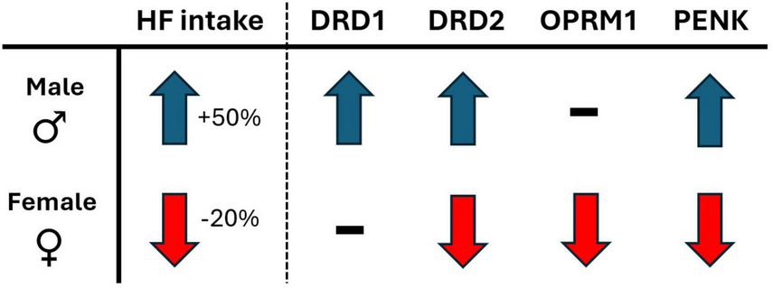 Kocum CG, Cam Y, Shay DA, Schweizer TA, Konrad ER, Houska TK, Sardina CA, Schachtman TR, Vieira-Potter VJ and Will MJ (2024) Voluntary wheel running access produces opposite effects in male and female rats on both palatable diet consumption and associated ventral striatal opioid- and dopamine-related gene expression. Front. Integr. Neurosci. 18:1426219. doi: 10.3389/fnint.2024.1426219