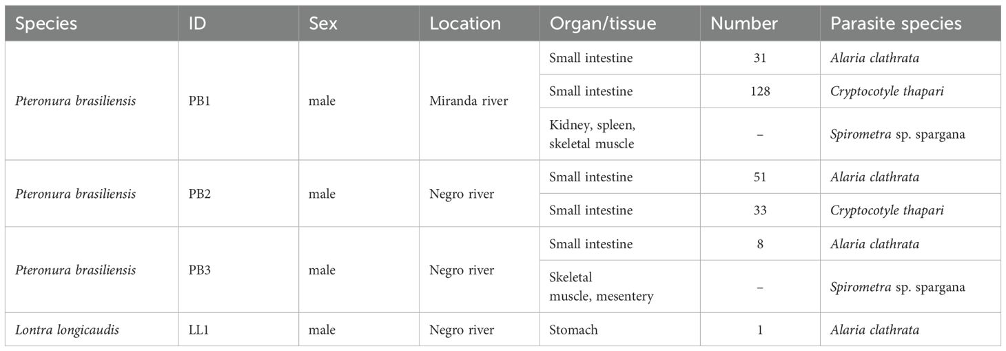 Table 2. Helminths recovered from Pteronura brasiliensis and Lontra longicaudis carcasses (Pantanal, February 2020- September 2022).