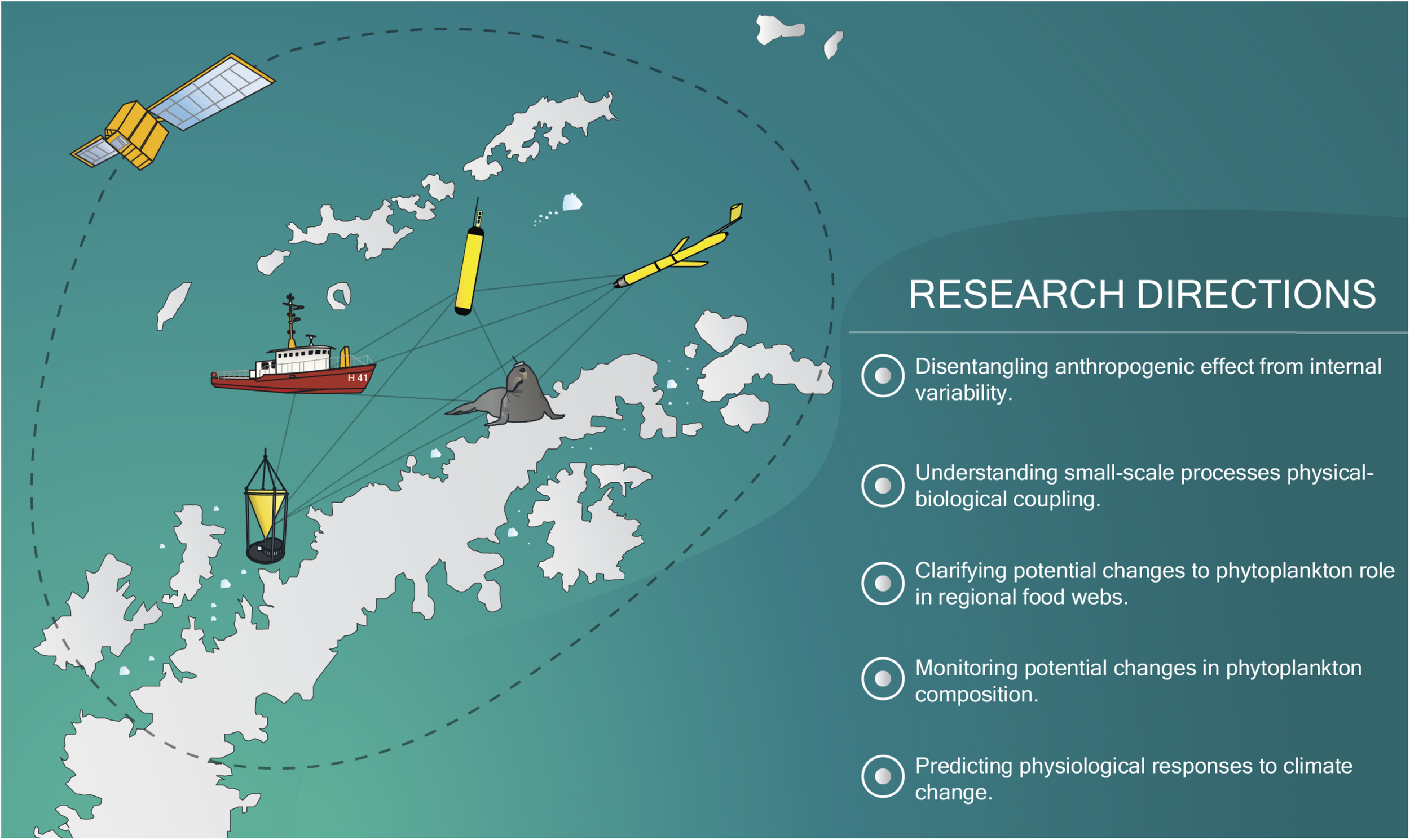 The Southern Ocean is instrumental in the functioning of the global ocean. It is responsible for over a third of the global CO2 ocean sequestration, playing a key role in driving global biogeochemistry (Gruber et al., 2009). While covering only 30% of the global ocean’s surface, it is predicted to account up to 75% of the heat uptake (Frölicher et al., 2015), underlining its importance under the reported and predicted impacts of anthropogenic-driven climate change. Thus, a better understanding of Southern Ocean processes on a circumpolar and regional scales and their vulnerability is urgent, especially considering that climate-driven changes over its biogeochemistry likely to impact from primary producers to changes on the ecosystem functioning (Henley et al., 2020).