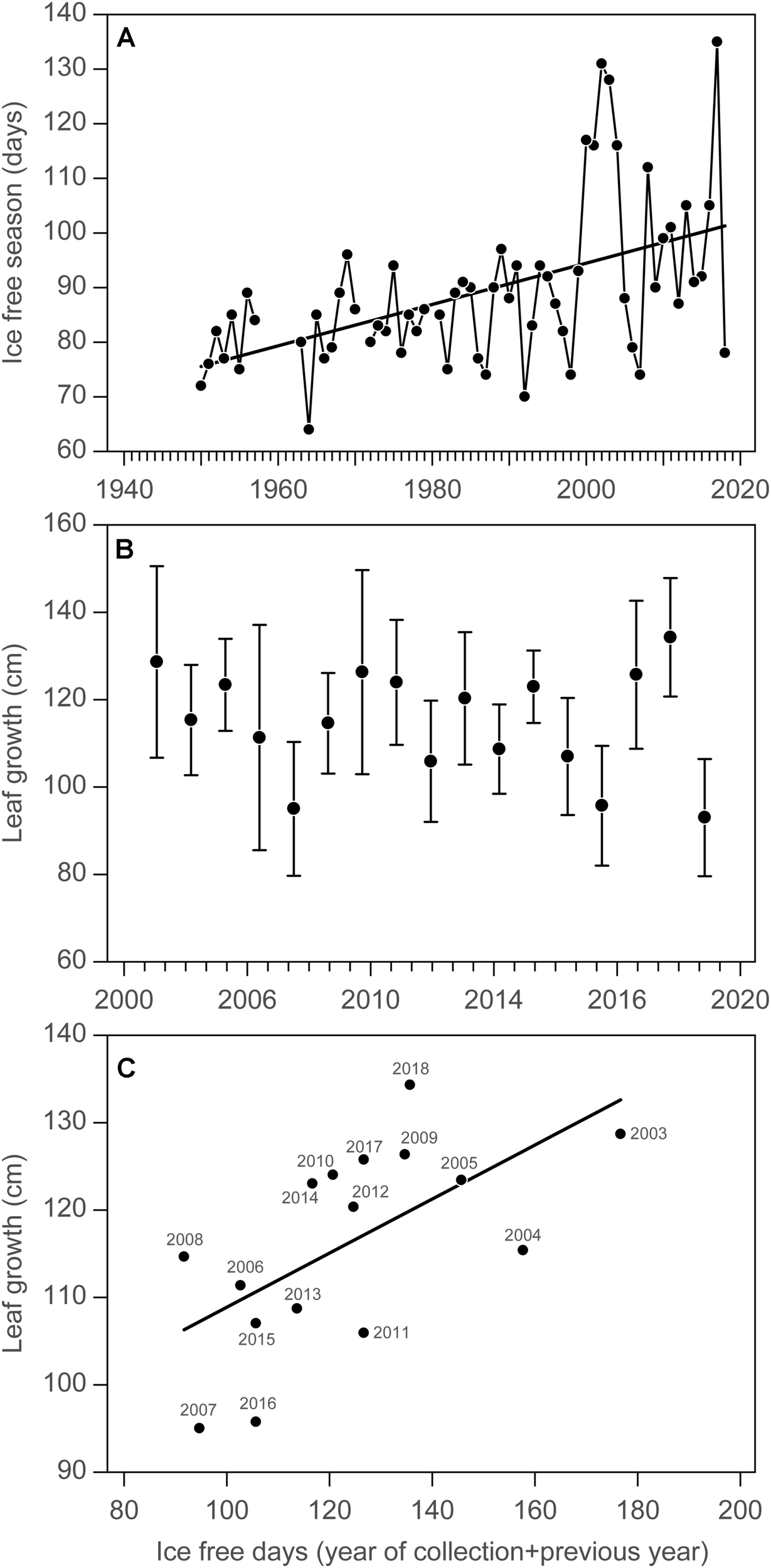 | (15) Young Sound | 74.32°N, −20.23°W | 2003–2019 | s | Kelp growth | Na | O | nd | Greenland Ecosystem Monitoring |