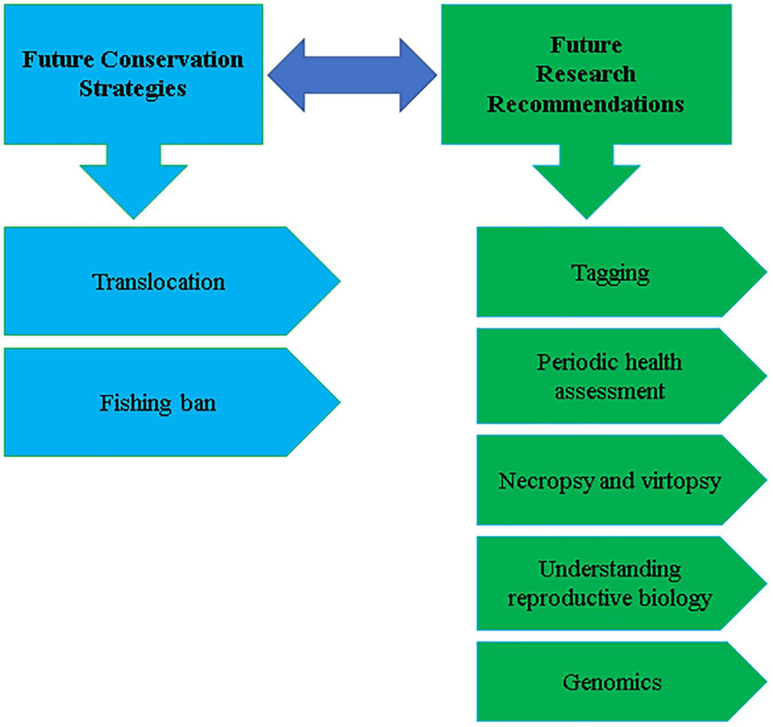 Most of the literature suggests that the worsening ecological environment is the causative factor for the IRDs decline (Braulik, 2006; Noureen, 2013; Braulik et al., 2015b). However, it is unknown how these various environmental factors can cause morbidity or mortality. Therefore, it is very crucial from a conservation point of view to identify the exact cause of illness or death using necropsy, virtopsy, pathology, histopathology, microbiology, and biochemistry techniques. All this information will guide the conservationist in designing conservation strategies.