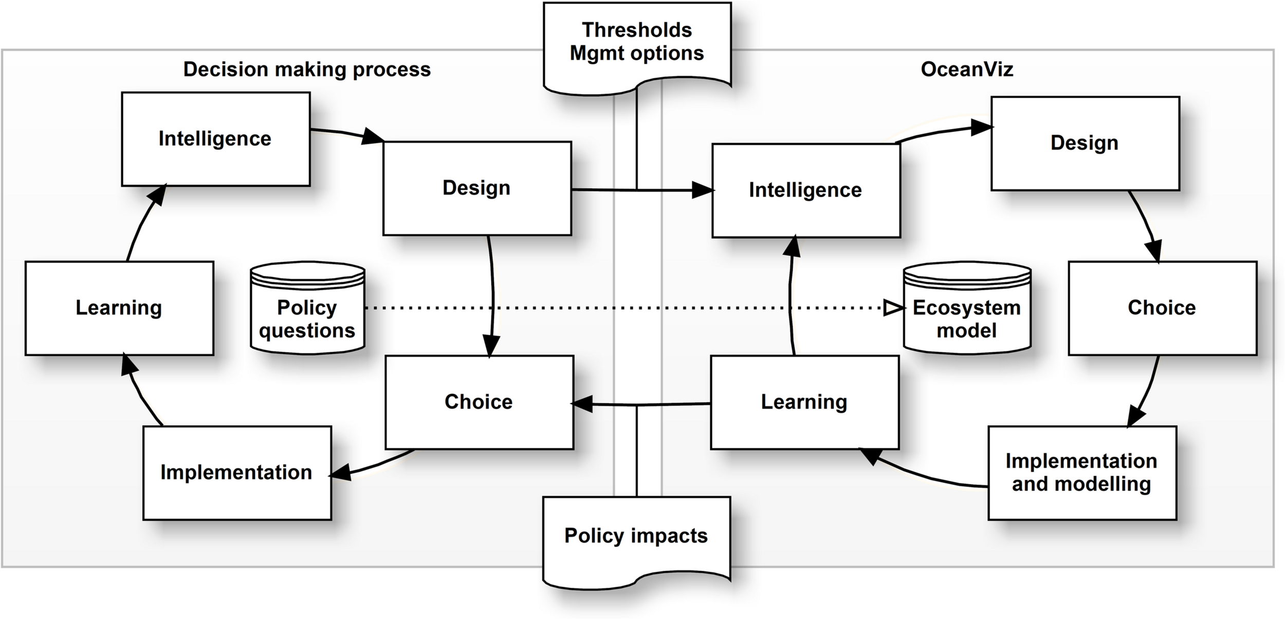 The flow of OceanViz within a decision making process.