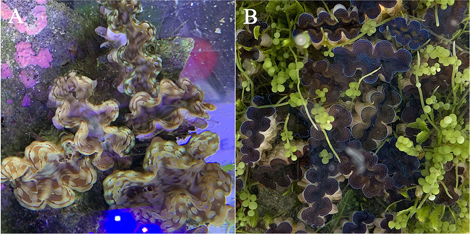 Giant clam species are an important part of coral reefs with great ecological and economic value, and are distributed throughout the tropical Indo-Pacific from the East African coast to the Pitcairn Islands in the eastern Pacific, and from Okinawa in Japan to south of the Great Barrier Reef (GBR) in Australia (bin Othman et al., 2010; Neo et al., 2017). It is well-known that giant clams have a mutualistic relationship with dinoflagellates of the genus Symbiodinium, also known as zooxanthellae (Hirose et al., 2006; Mies, 2019). Zooxanthellae supply nutrients to the giant clam host, and the host provides a suitable living environment for the symbiotic algae (Fitt et al., 1986). Interestingly, giant clams harbor a wide range of zooxanthellae, consisting of diverse phylotypes (clades). Among bivalves, the association with Symbiodinium is unique to Tridacninae and Fraginae (Kirkendale and Paulay, 2017; Rossbach et al., 2020).
