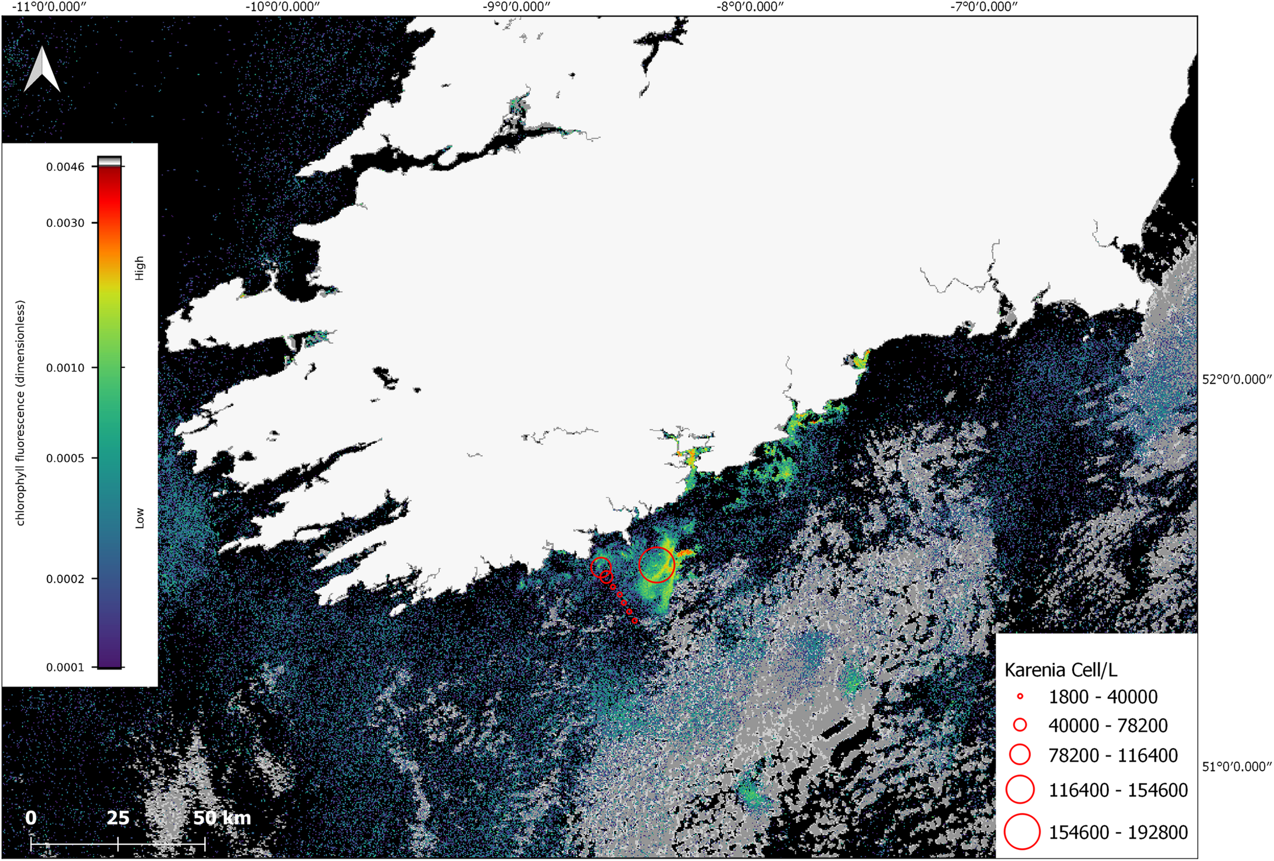 The phytoplankton bloom we identified using the satellite technology was localised and was reflected in the inshore phytoplankton samples from around Ireland.