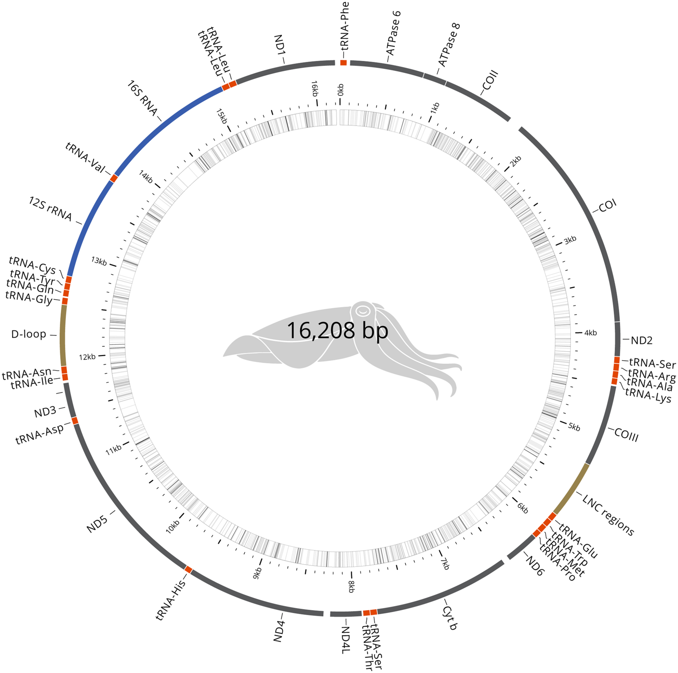 The mitochondrial genome was recovered manually from the genome assembly. The mitogenome, 16,208 bp, has been validated for continuity and circularity and annotated using MITOS (Bernt et al., 2013). The complete mitochondrial genome (Figure 2) was compared to the reference S. pharaonis genome (Wang et al., 2014). Only one haplotype was recovered, which is similar at 92% with the reference genome (EBI Accession AP013076).