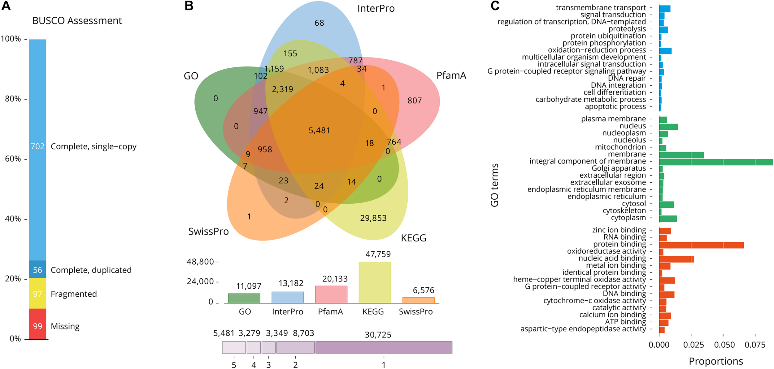 Functional annotation: (1) InterProScan: revision 5.44ā79.0, parameters: -iprlookup -goterms -pa -f tsv -dp.