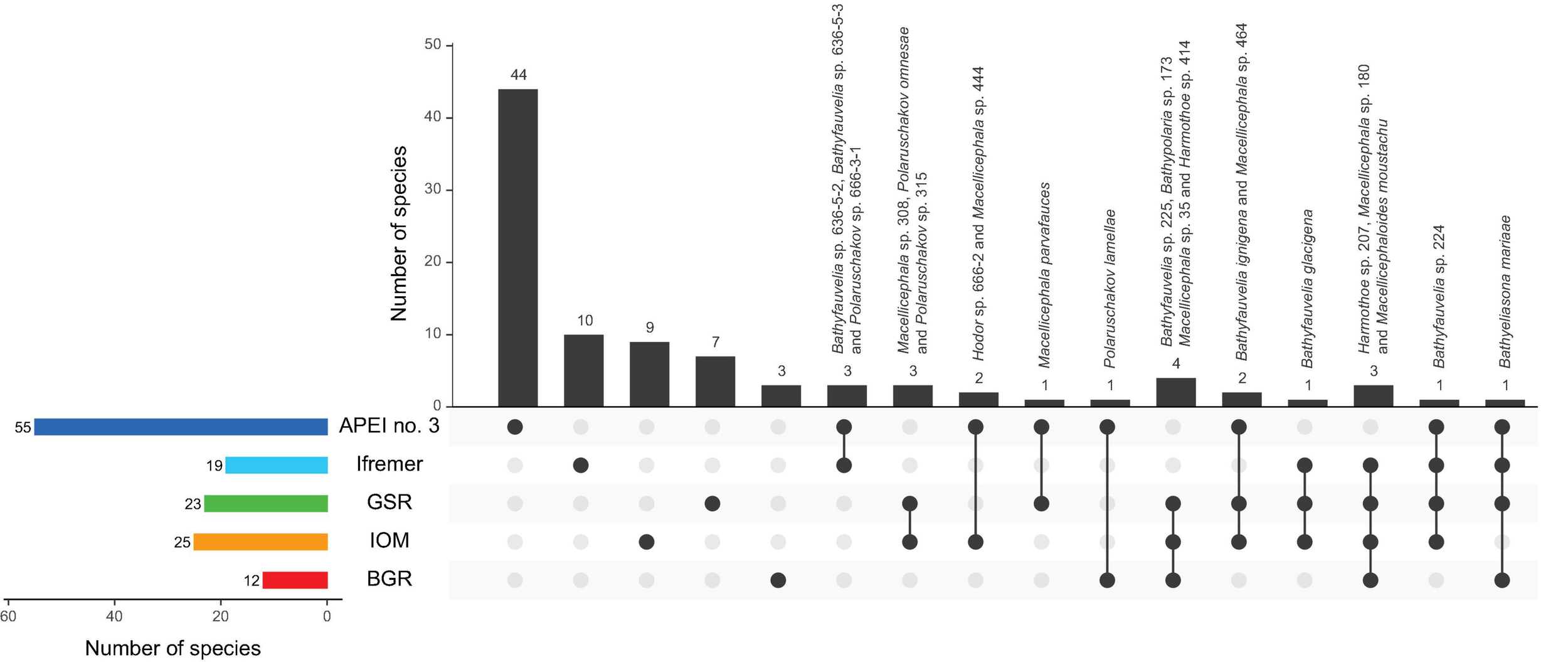| Macellicephala sp. 180 | 1 | 12 | 29 | 3 | 45 | Polaruschakov sp. 655-3-7 | 1 | 1 | |||||