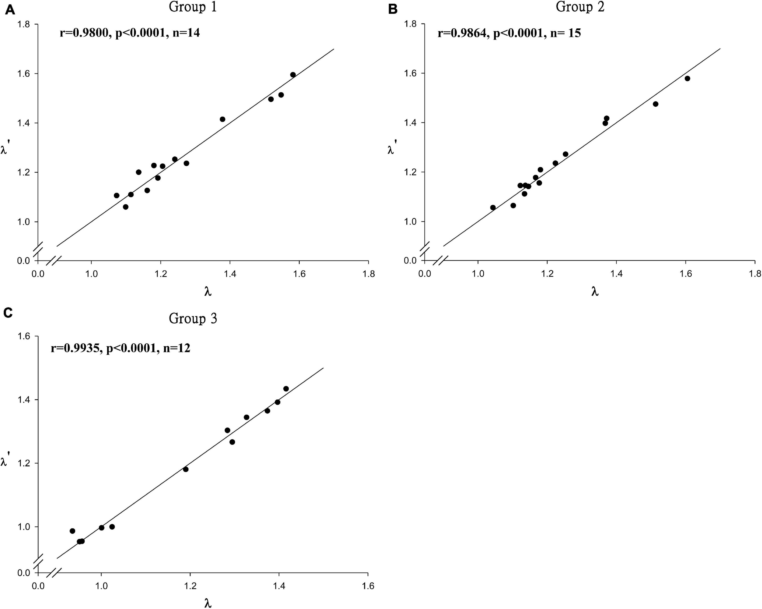 The CA with hierarchical Ward’s method was used to estimate the scores of the first to third principal components and to draw the tree plot. Species with similar parameter values were grouped together and named according to their shared life history traits. After grouping, the general linear model (GLM) was used to develop an empirical equation for each group to describe the relationship between λ′ and life history parameters. A variance inflation factor (VIF) (Wooldridge, 2009) was used to examine the multicollinearity of life history parameters in regression models. Multicollinearity exists among life history parameters when VIF ≥ 10, and the parameter is removed from the regression model. The best model was selected using the stepwise Akaike information criterion (AIC; Akaike, 1974) method (Venables and Ripley, 2002).