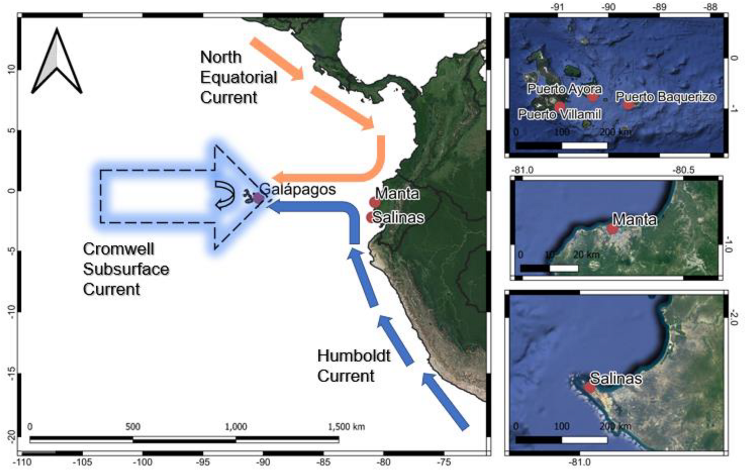 Whilst there has been an improvement in environmental conditions, perceptions of people who are impacted day by day in places where the economy depends on tourism or fishing activities are not well known. Additionally, we need to have a scientific baseline of data and information that can be combined with public perceptions to articulate a proper tourism, coastal fishing and pollution management plan post the COVID-19 pandemic. The work reported here seeks to provide information and priorities based on environmental qualitative information that is supported by satellite quantitative data at three main Ecuadorian beaches in Salinas, Manta, and Galapagos. We think this is a unique opportunity globally to create a scientific baseline at a time of reduced environmental impact, as beaches and near-shore waters have taken on temporary features of Protected Marine Areas. Such baseline information can help initiate comprehensive management programs (Partelow et al., 2015) for the future, and recommendations stemming from the present study are proposed below.