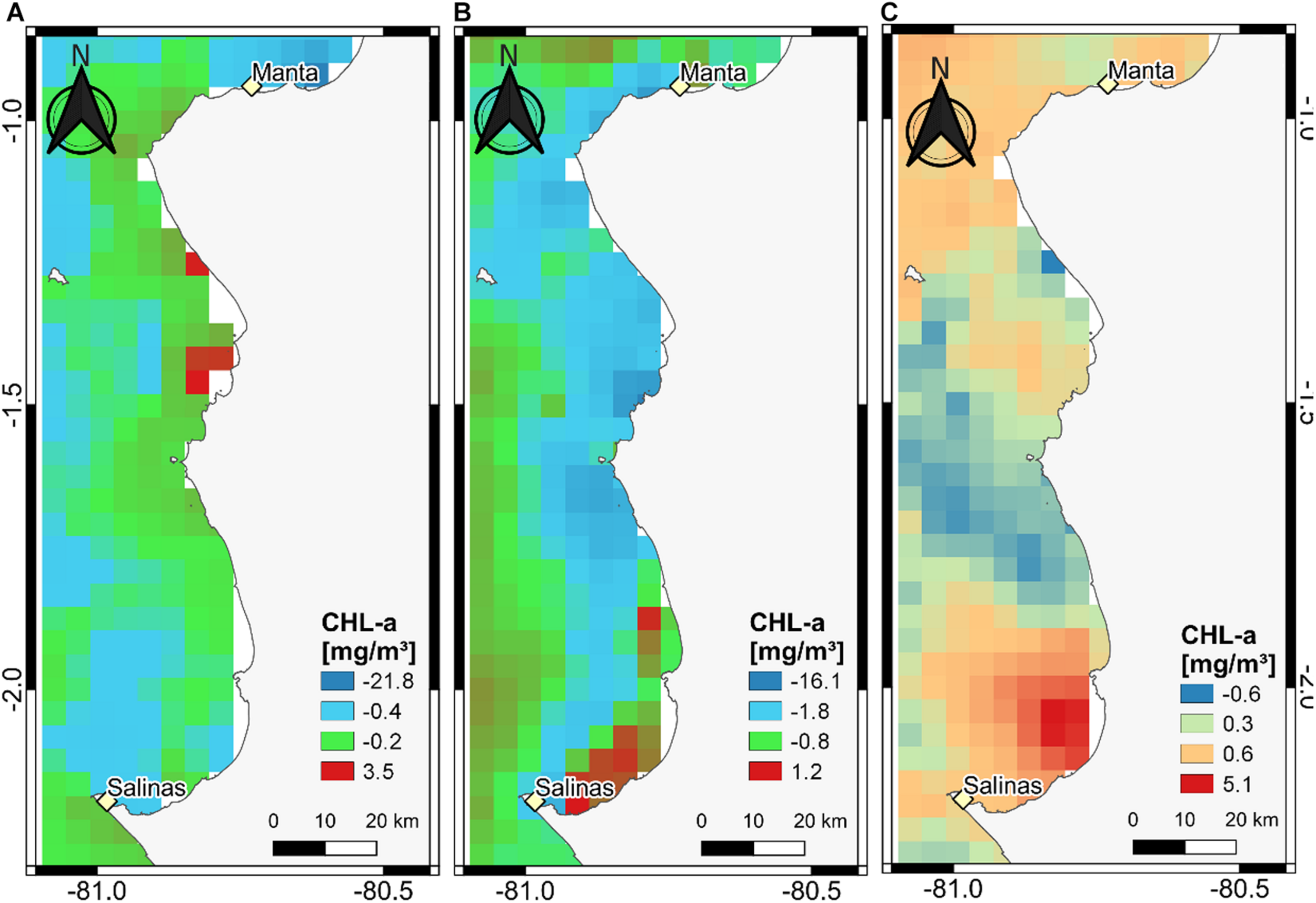 The reduction in contamination on beaches and in coastal water has been seen globally where quarantine measures exist. Beaches in Acapulco (Mexico), Barcelona (Spain), and Salinas (Ecuador) now have much more transparent and cleaner waters (Zambrano-Monserrate et al., 2021); the largest lake of India (Vembanad) has around 16% less suspended solids than before the pandemic (Yunus et al., 2020). Also, anecdotal reports in social media talk of marine mammals close to beaches, perhaps in response to the considerable reduction of noise levels. Therefore, in general, environmental conditions have at least temporarily improved (Yunus et al., 2020), and beaches have moved toward the status of temporary Marine Protected Areas. However, there is still very limited information on changes in environmental quality in South American coastal waters that feeds into this more global view.