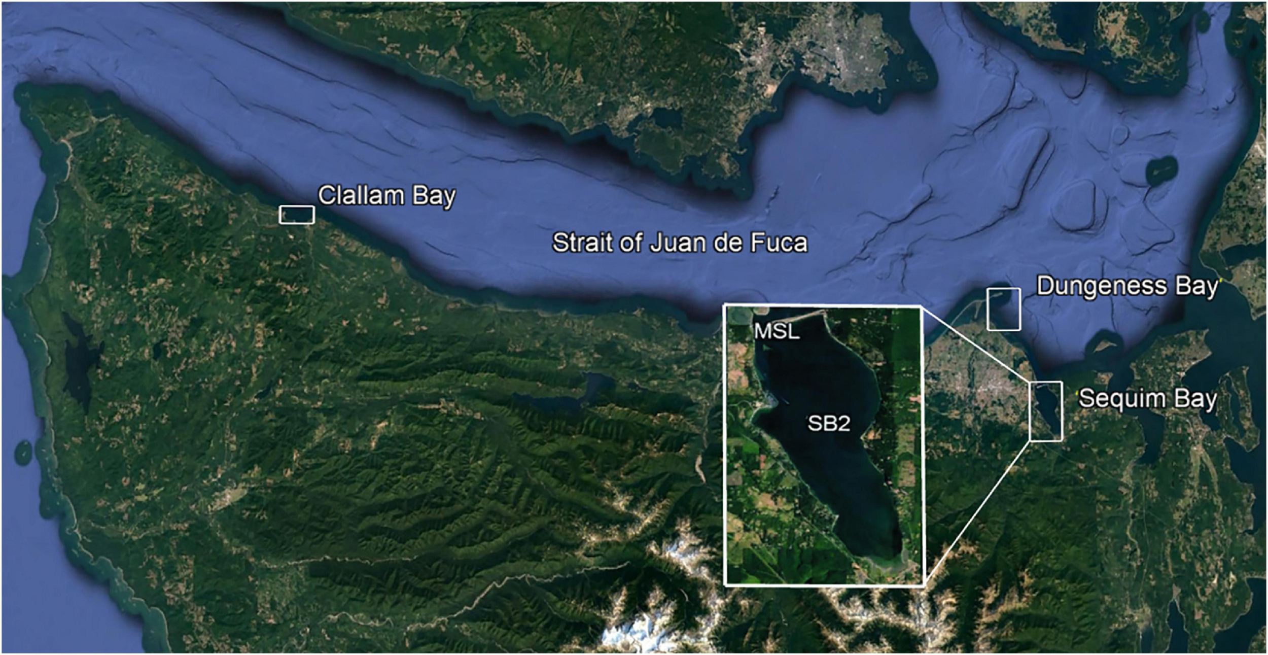 Triton Initiative test sites: SB2, MSL, Dungeness Bay, and Clallam Bay, located along Washington State’s (United States) northern coast.