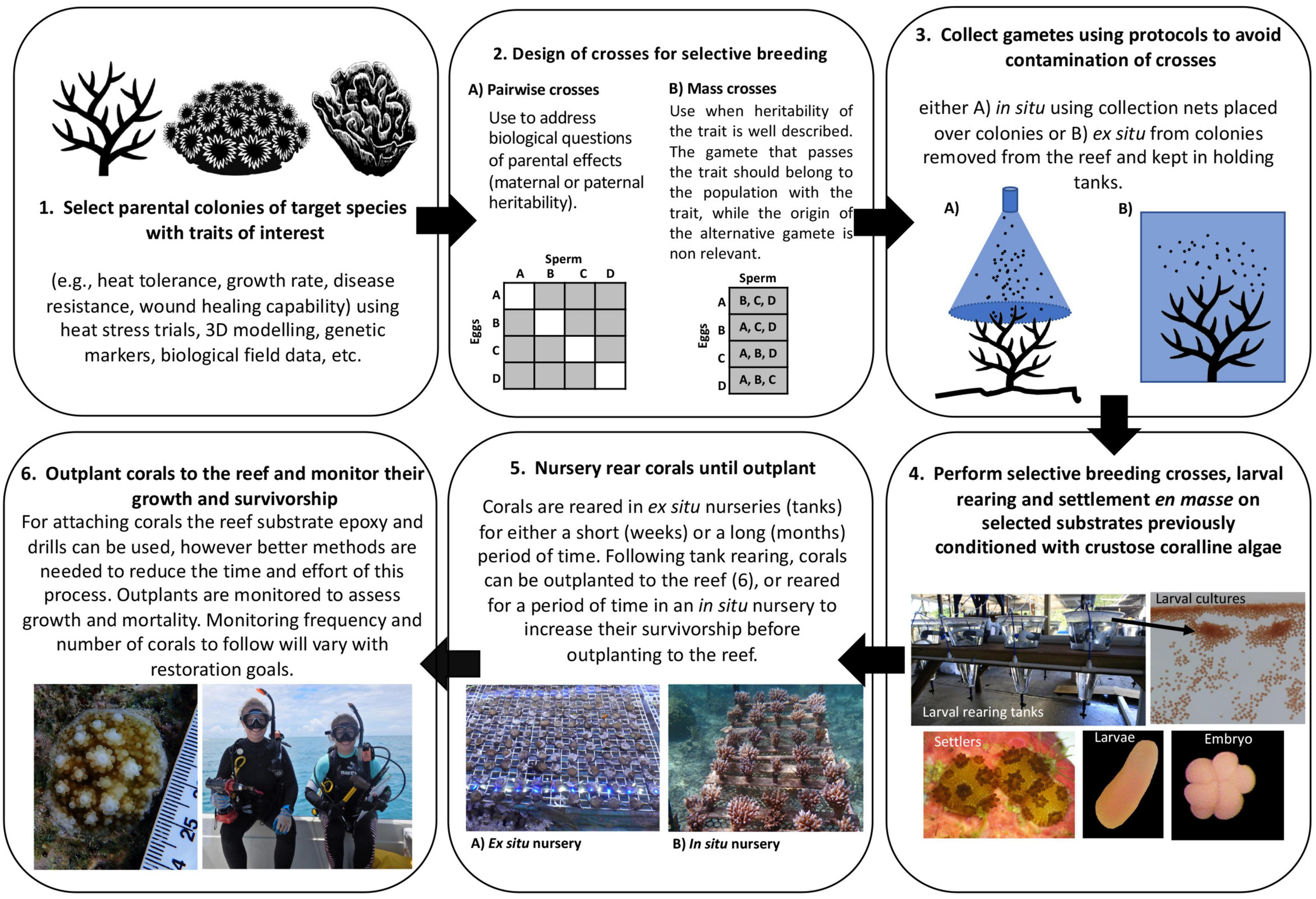 Humanes A, Beauchamp EA, Bythell JC, Carl MK, Craggs JR, Edwards AJ, Golbuu Y, Lachs L, Martinez HM, Palmowski P, Paysinger F, Randle JL, van der Steeg E, Sweet M, Treumann A and Guest JR (2021) An Experimental Framework for Selectively Breeding Corals for Assisted Evolution. Front. Mar. Sci. 8:669995. doi: 10.3389/fmars.2021.669995
