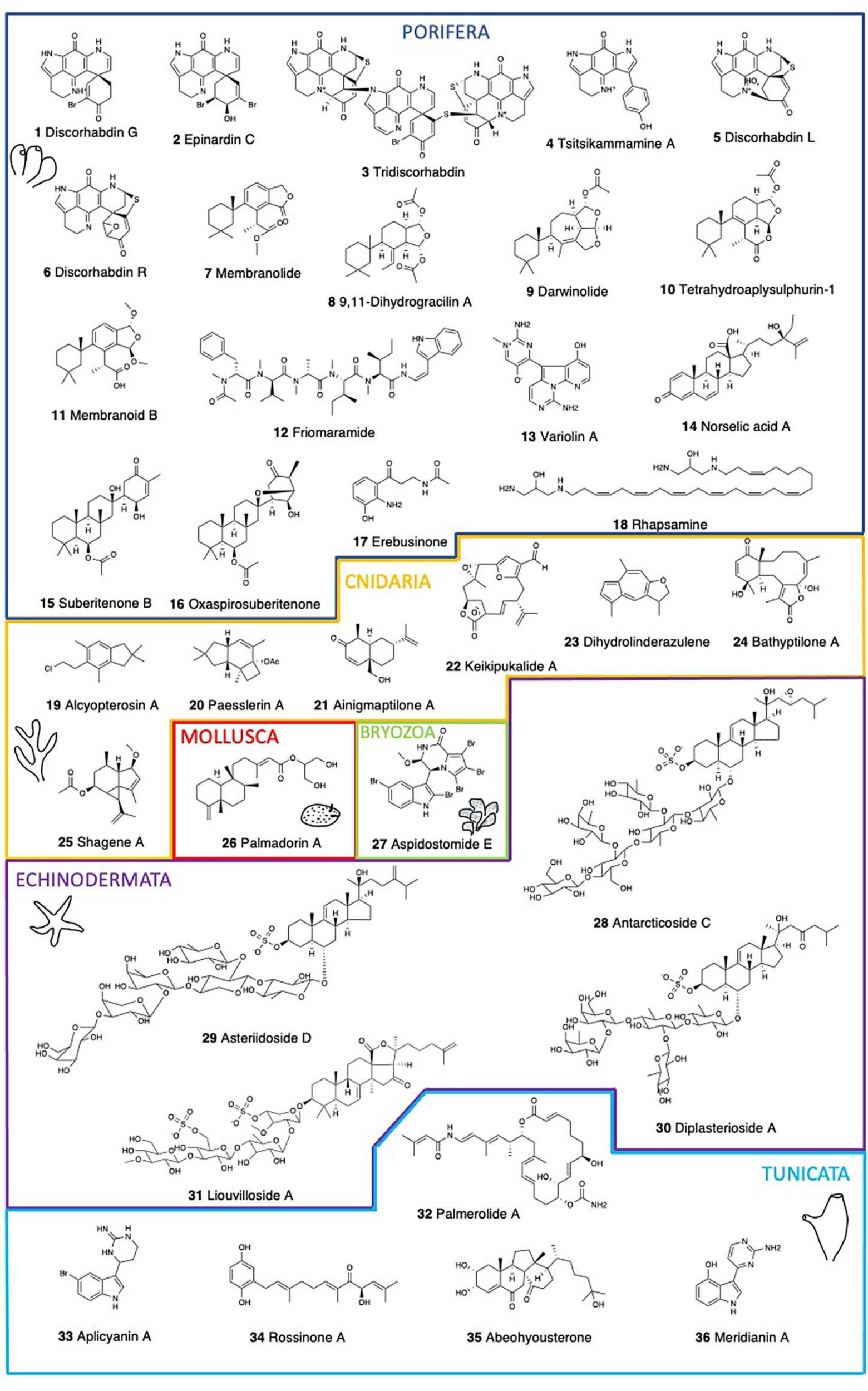 bioactive natural products, Porifera, Cnidaria, Mollusca, Bryozoa, Nemertea, Echinodermata, Tunicata