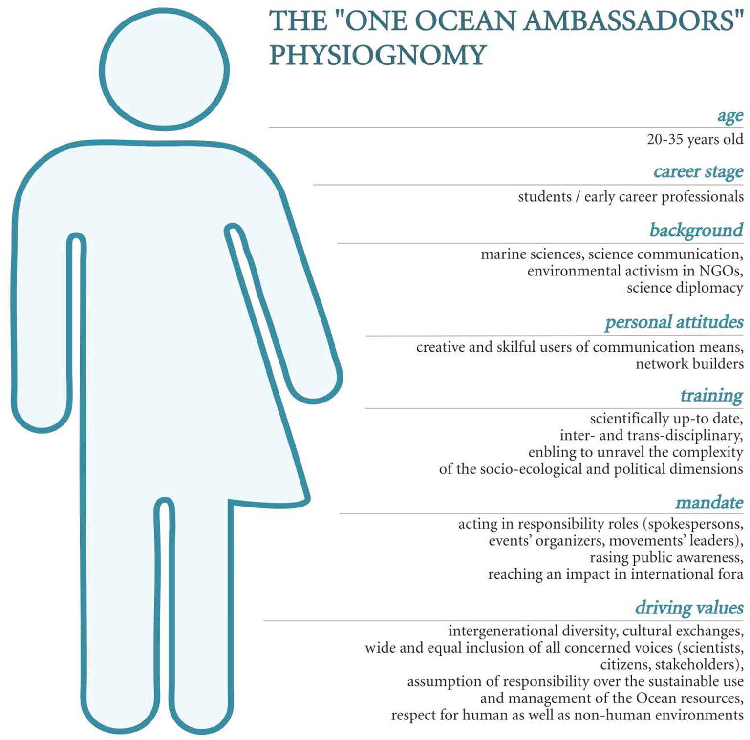 The physiognomy of the “One Ocean Ambassadors” emerging from the comparison of current marine ambassadors programs.