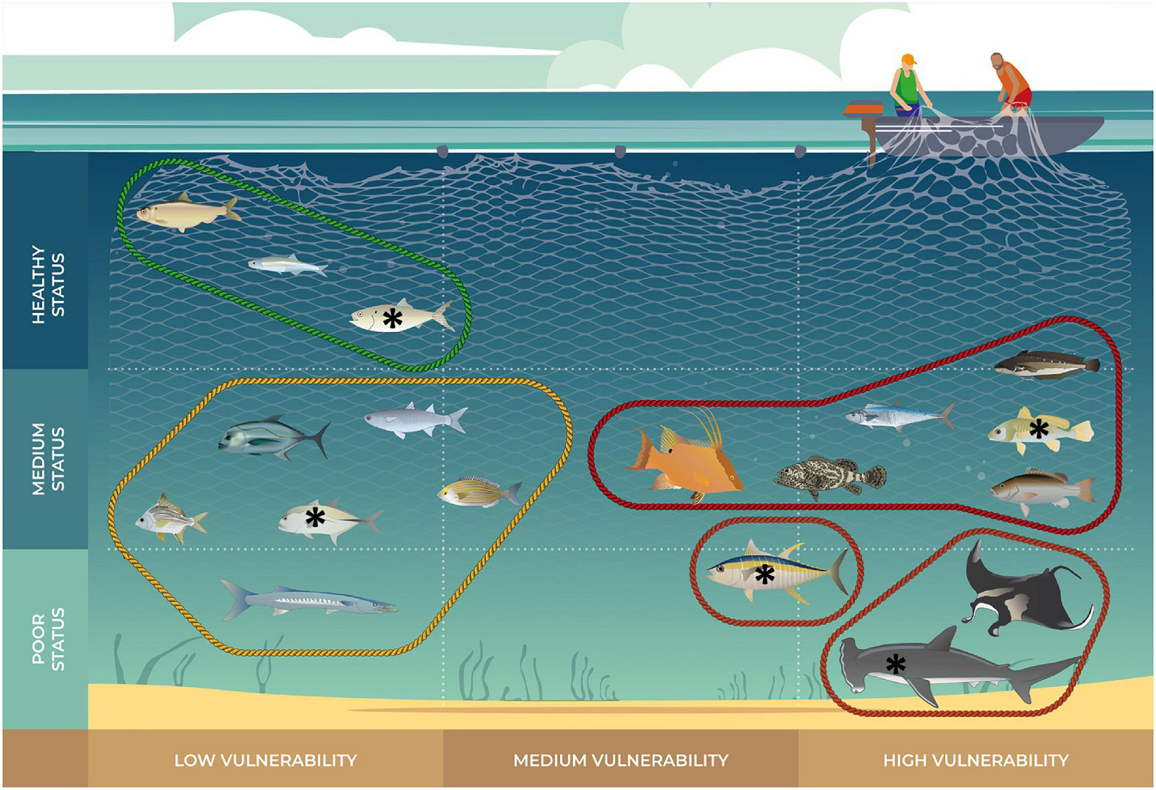 Another fundamental tool to achieve sustainable fisheries management is a learning network that serves as a platform for capacity building involving all key stakeholders and allows exchange and collaboration between different institutions and fishing communities during the different stages of fisheries management. Multispecies fishery management issues and solutions have been part of university courses and community workshops (Morón et al., 2019).