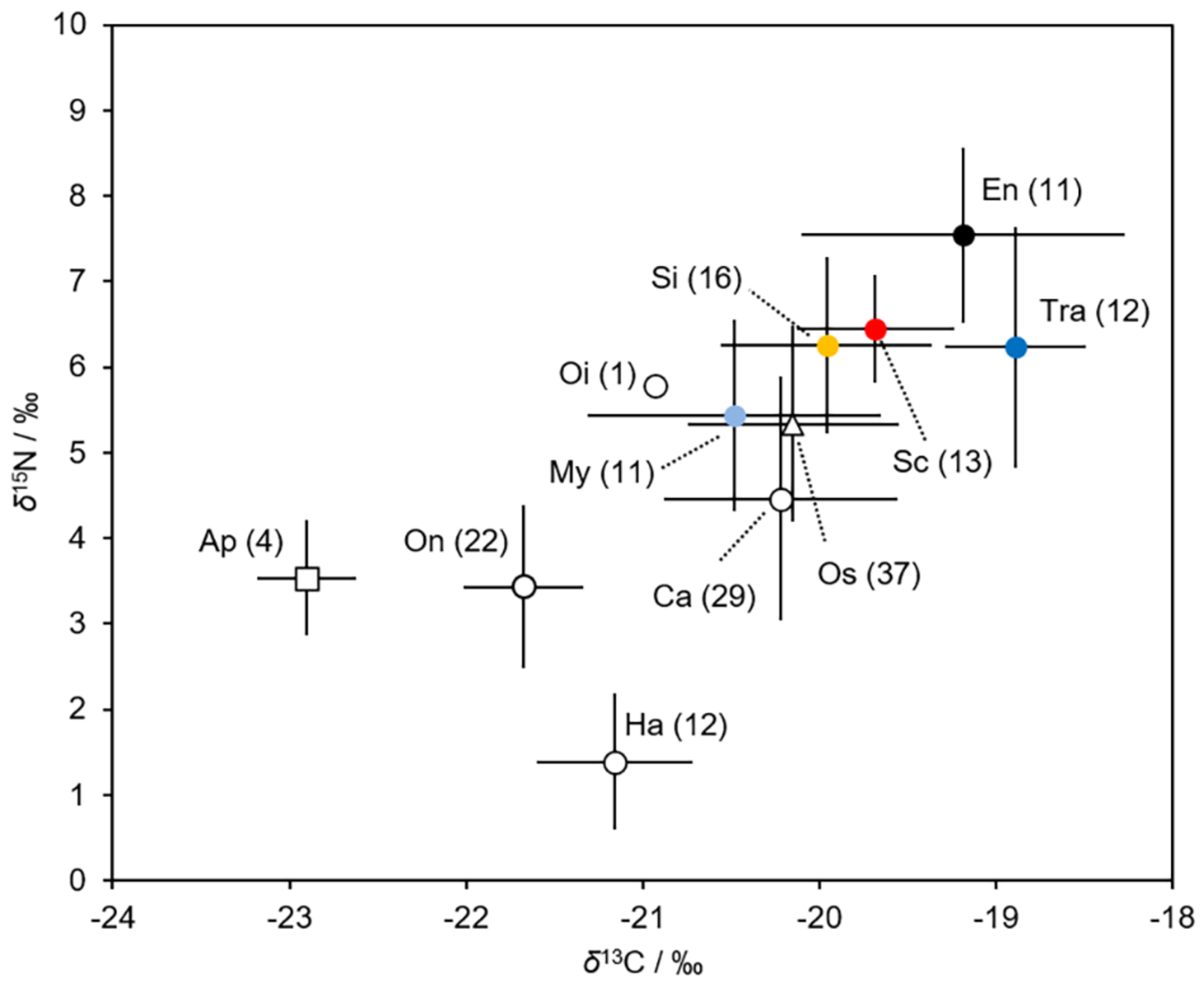 Sato R. Suzuki Y. (2010). Carbon and nitrogen stable isotope analysis by EA/IRMS.Res. Org. Geochem.2621–29. 10.20612/rog.26.0_21